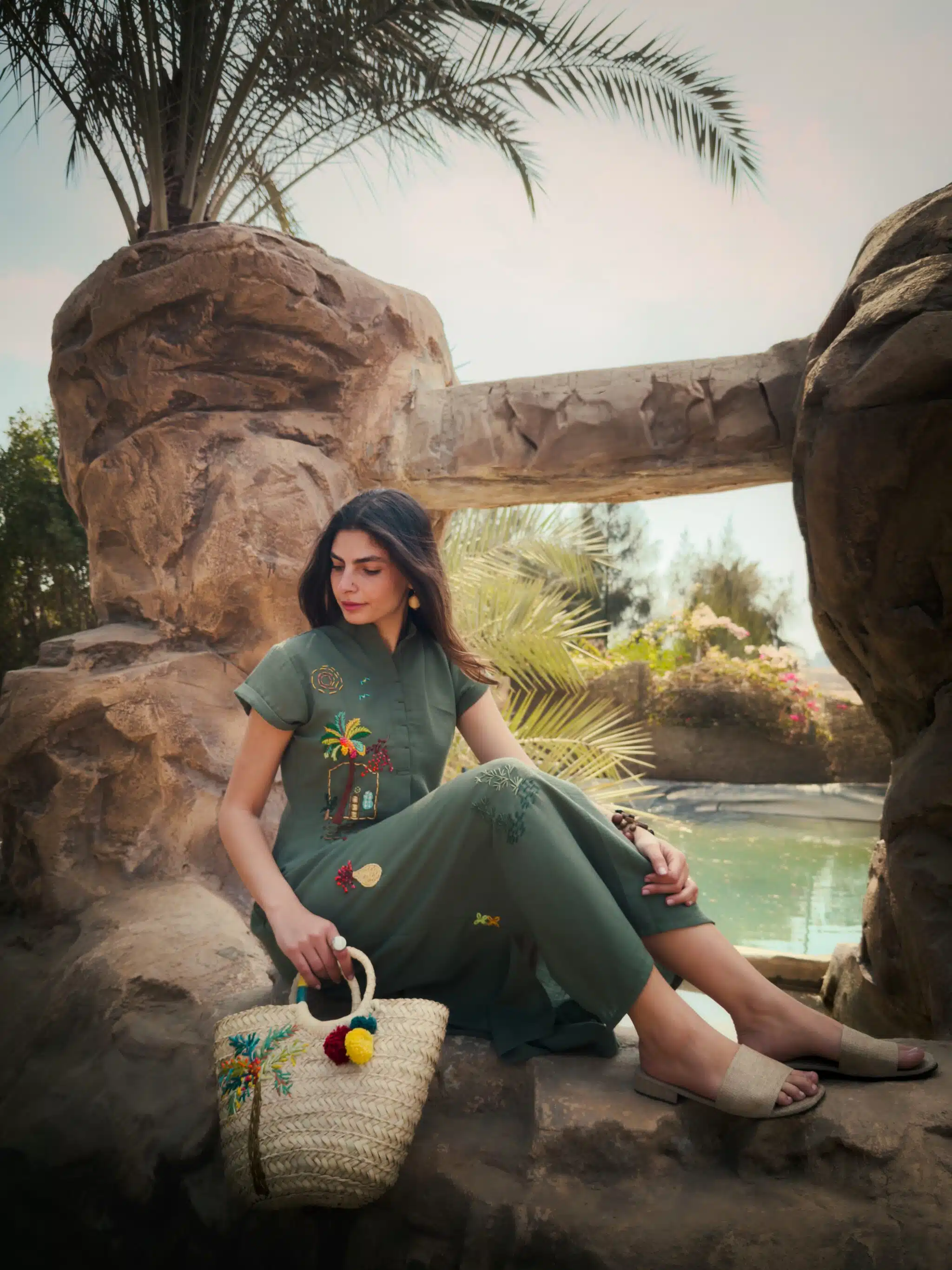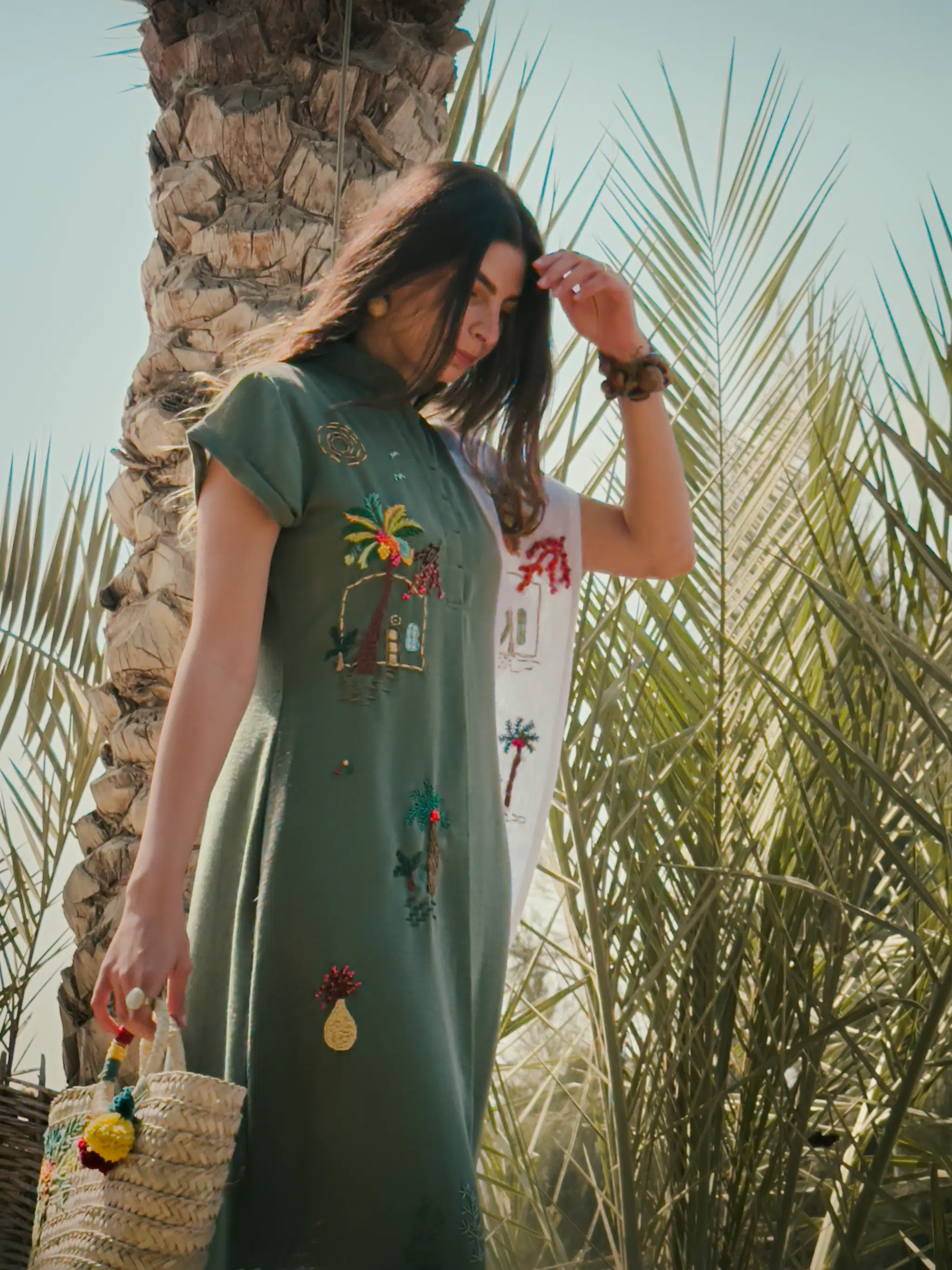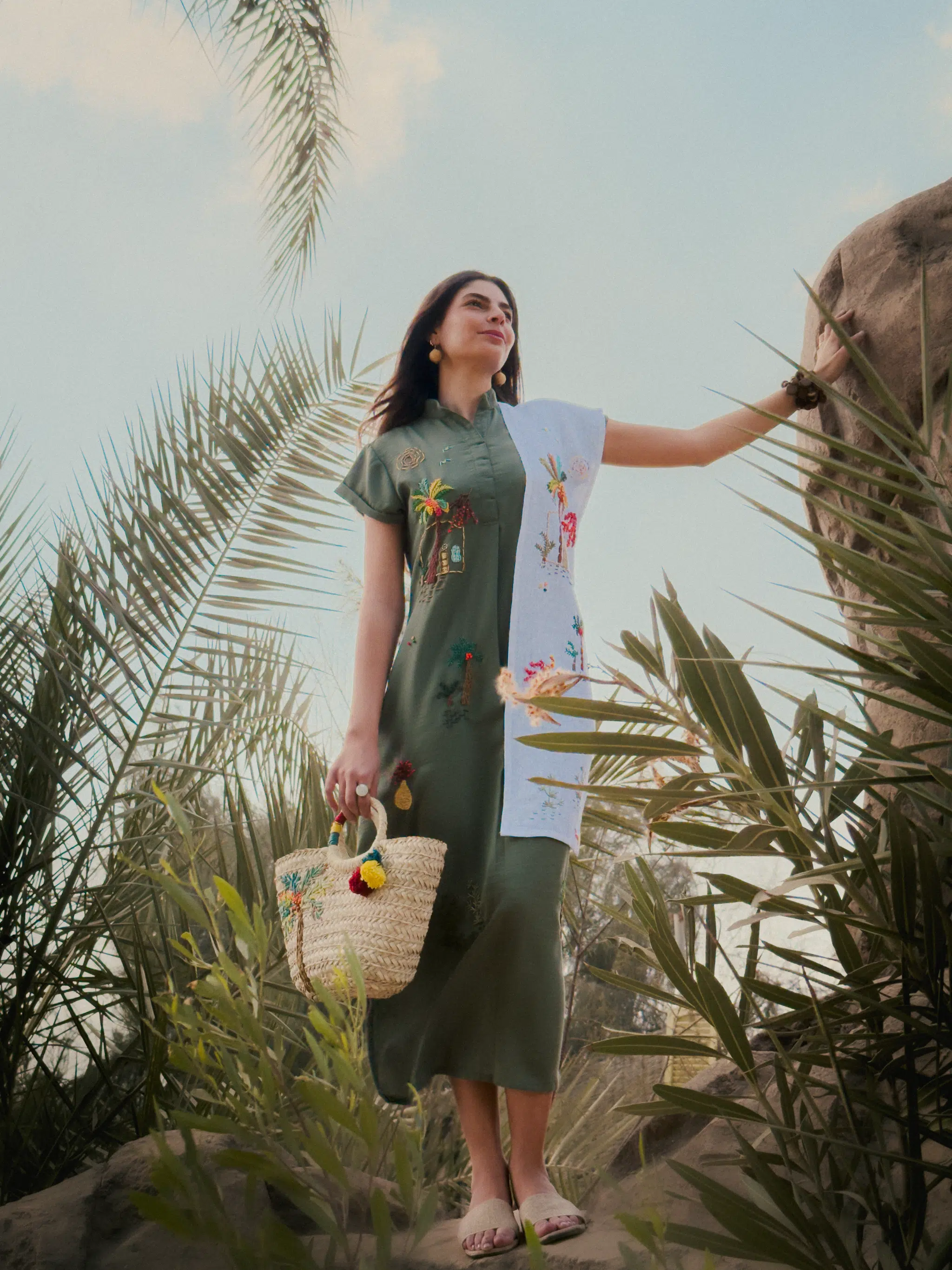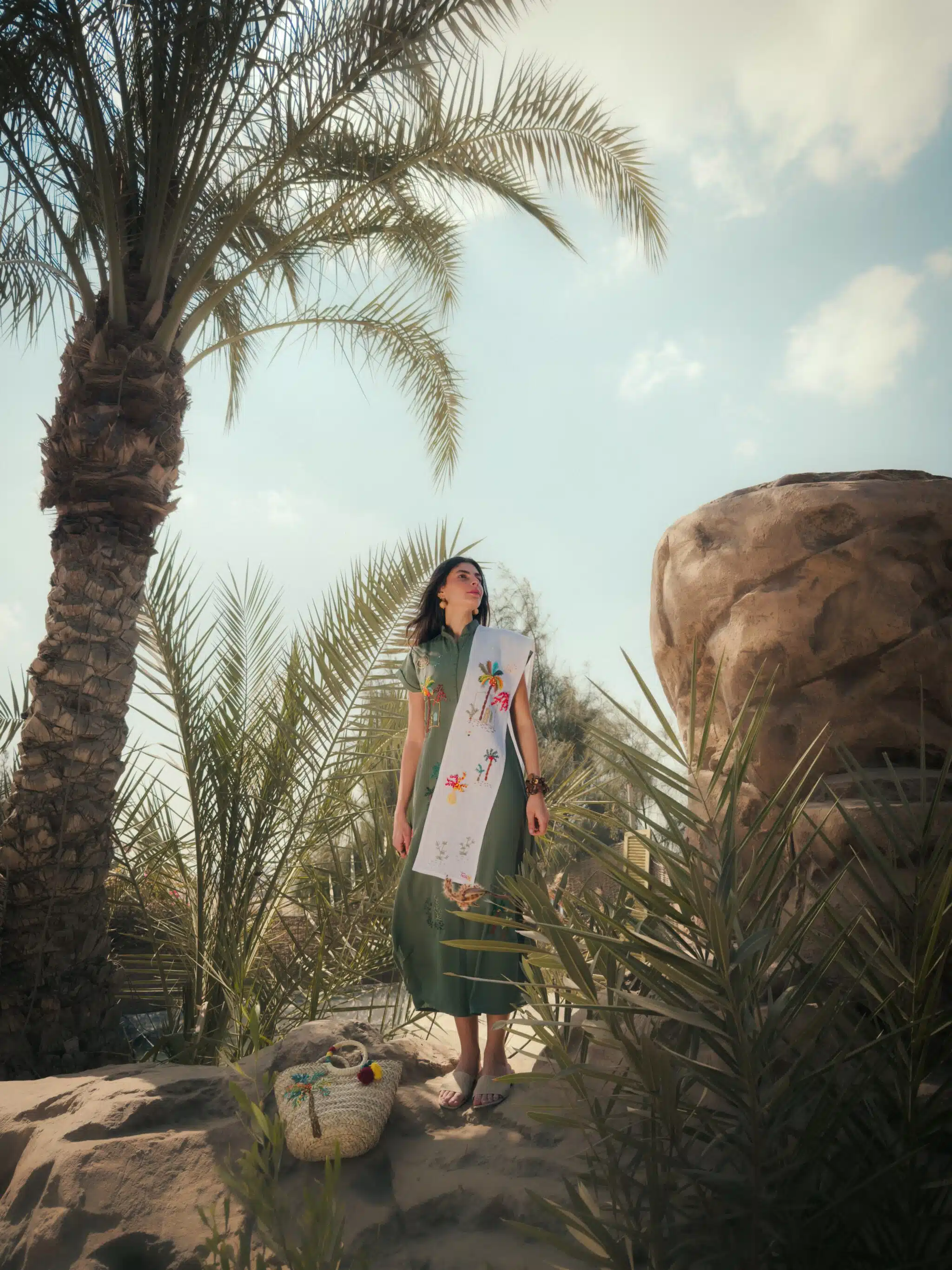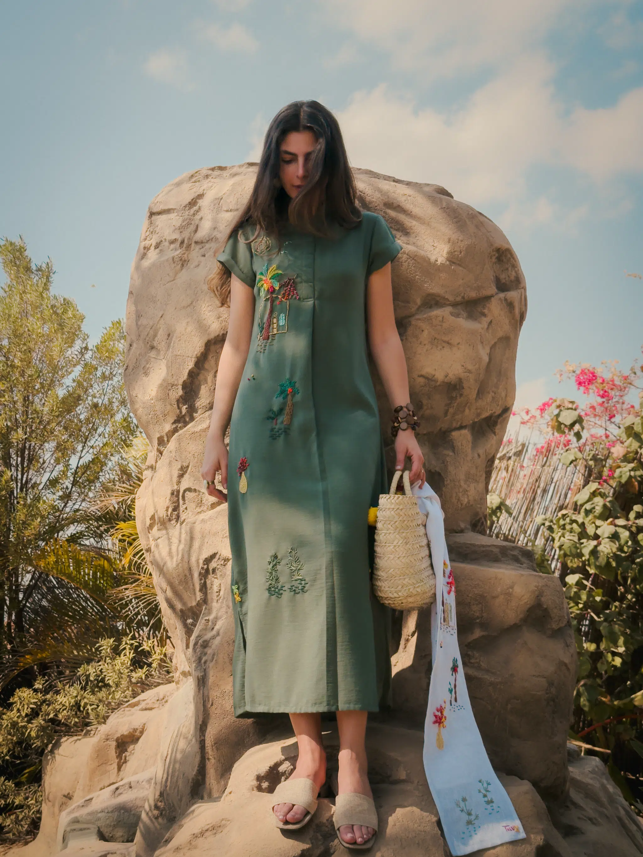 Available products in photo: pure linen Ardi scarf, Ardi straw bag
