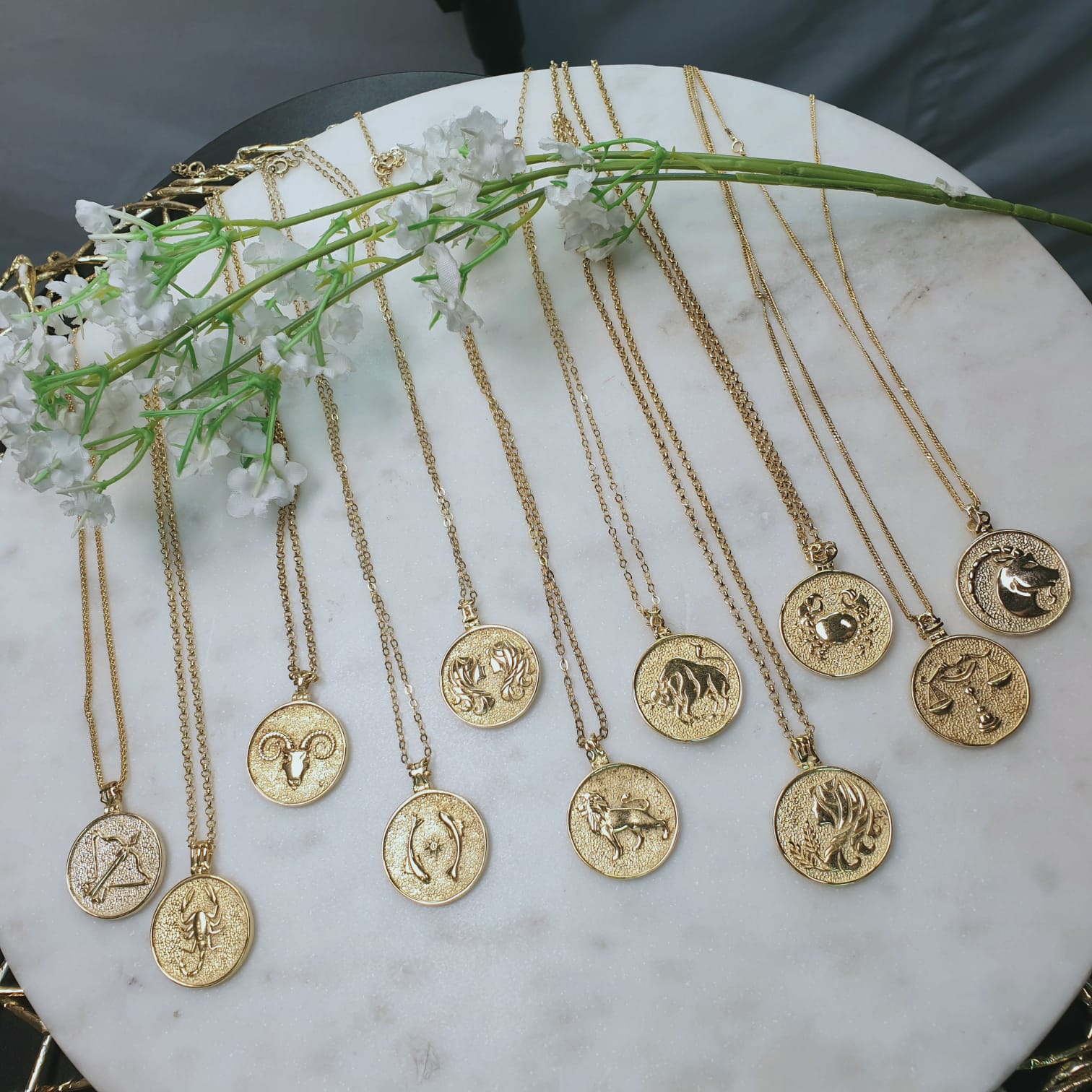 Description:925 sterling silver zodiac sign double faced pendant necklace. One side shows the sign shape and the other side shows the sign stars  constellation shape.