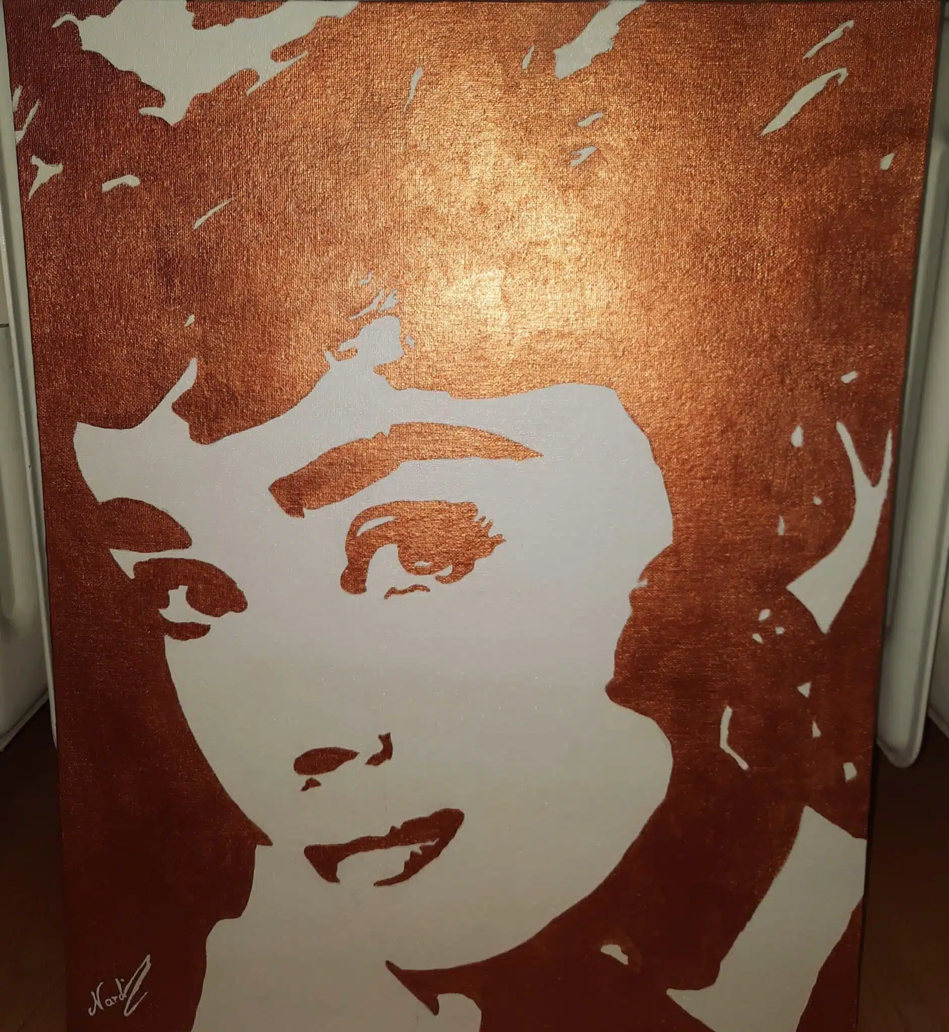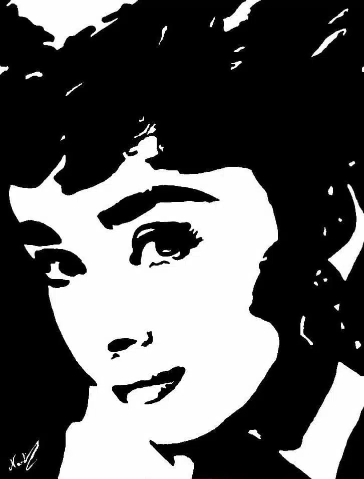 This is an acrylic painting of the actress Audrey Hepburn on canvas. It is based on only two colors.