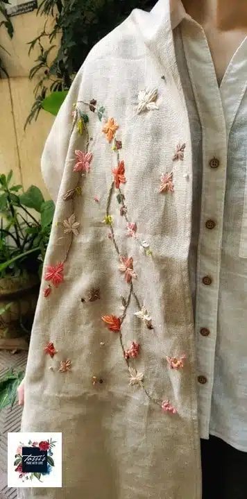 Material: Pure Linen Shawl, hand embroidered with cotton threads.