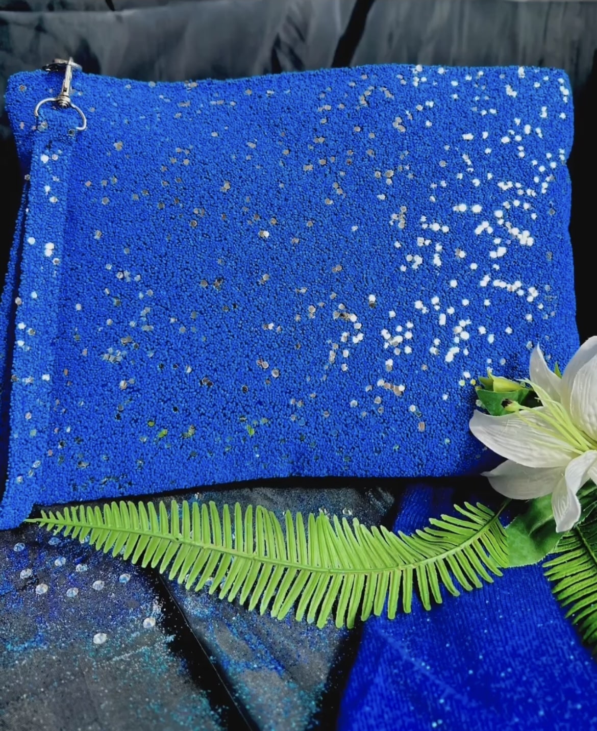 Azure Glow – Inspired by the deep blue sea, this radiant clutch sparkles like sunlight on the waves, making it a stunning statement piece.