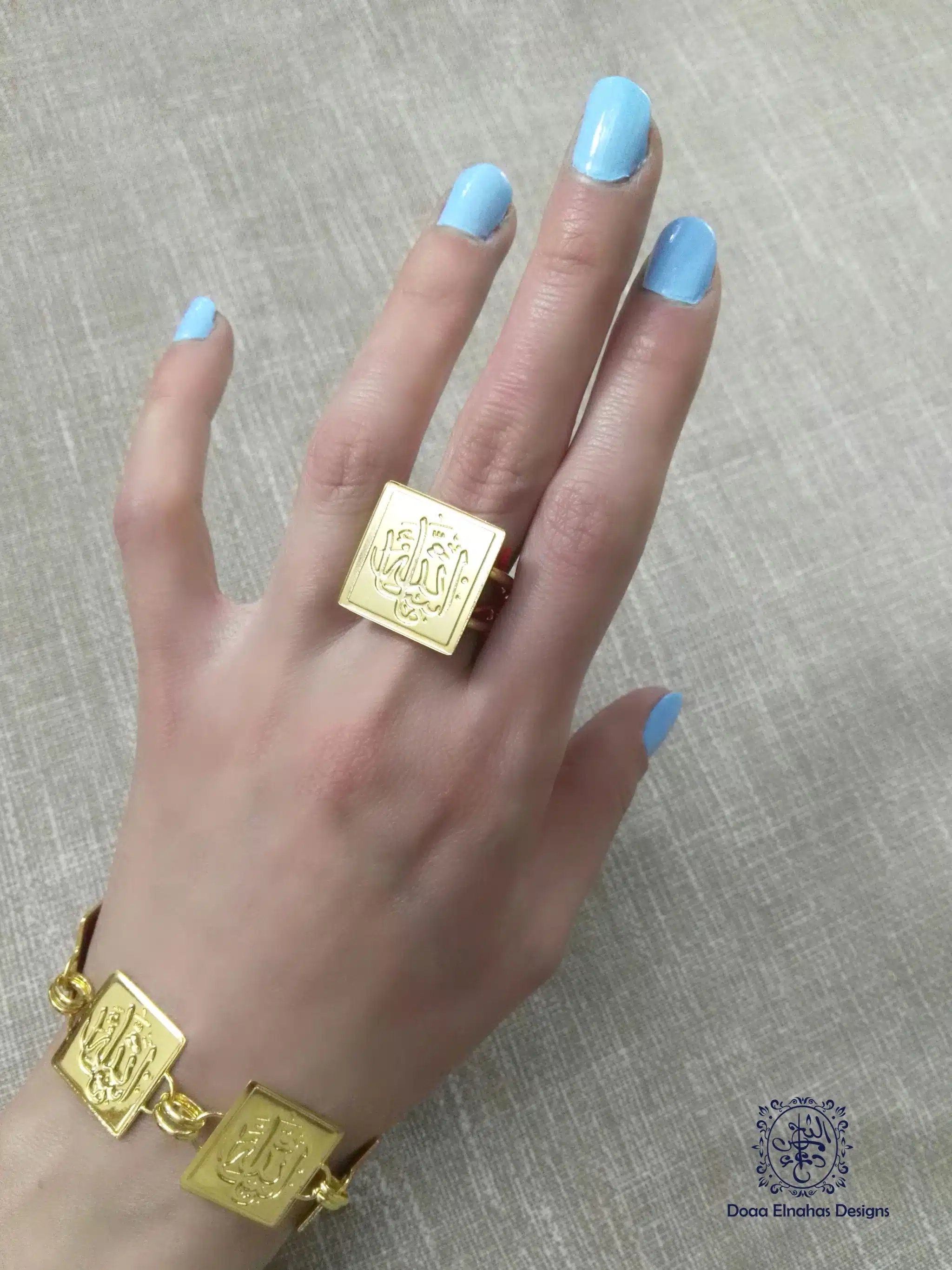 gold plated bracelet with “الله” engraved on each square