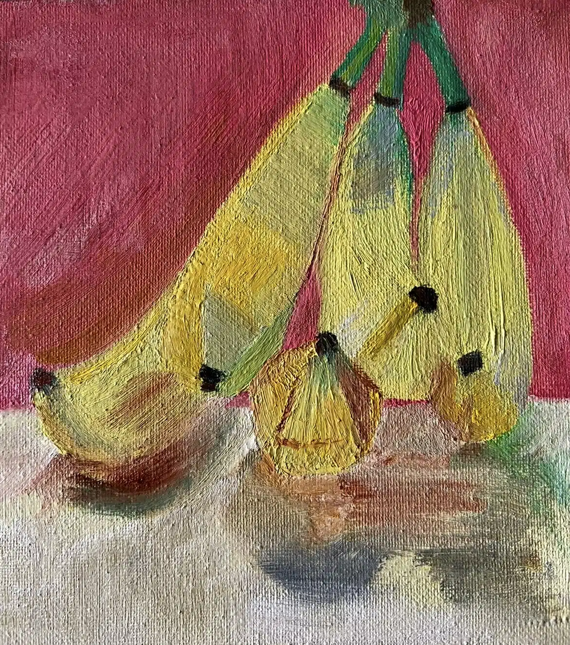 An oil painting.. a bunch of bananas . 20 x 20 , without frame or frame is customized