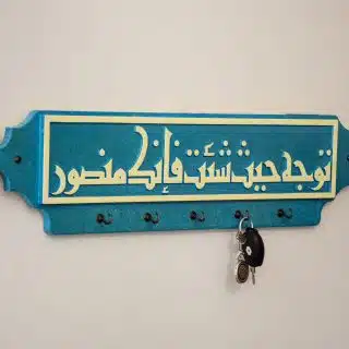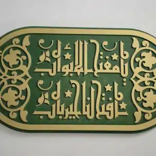 Adorned with elegant Arabic calligraphy, this piece celebrates traditional craftsmanship while adding a touch of cultural sophistication to any room. The natural warmth and durability of premium pitch pine wood ensure both beauty and longevity.