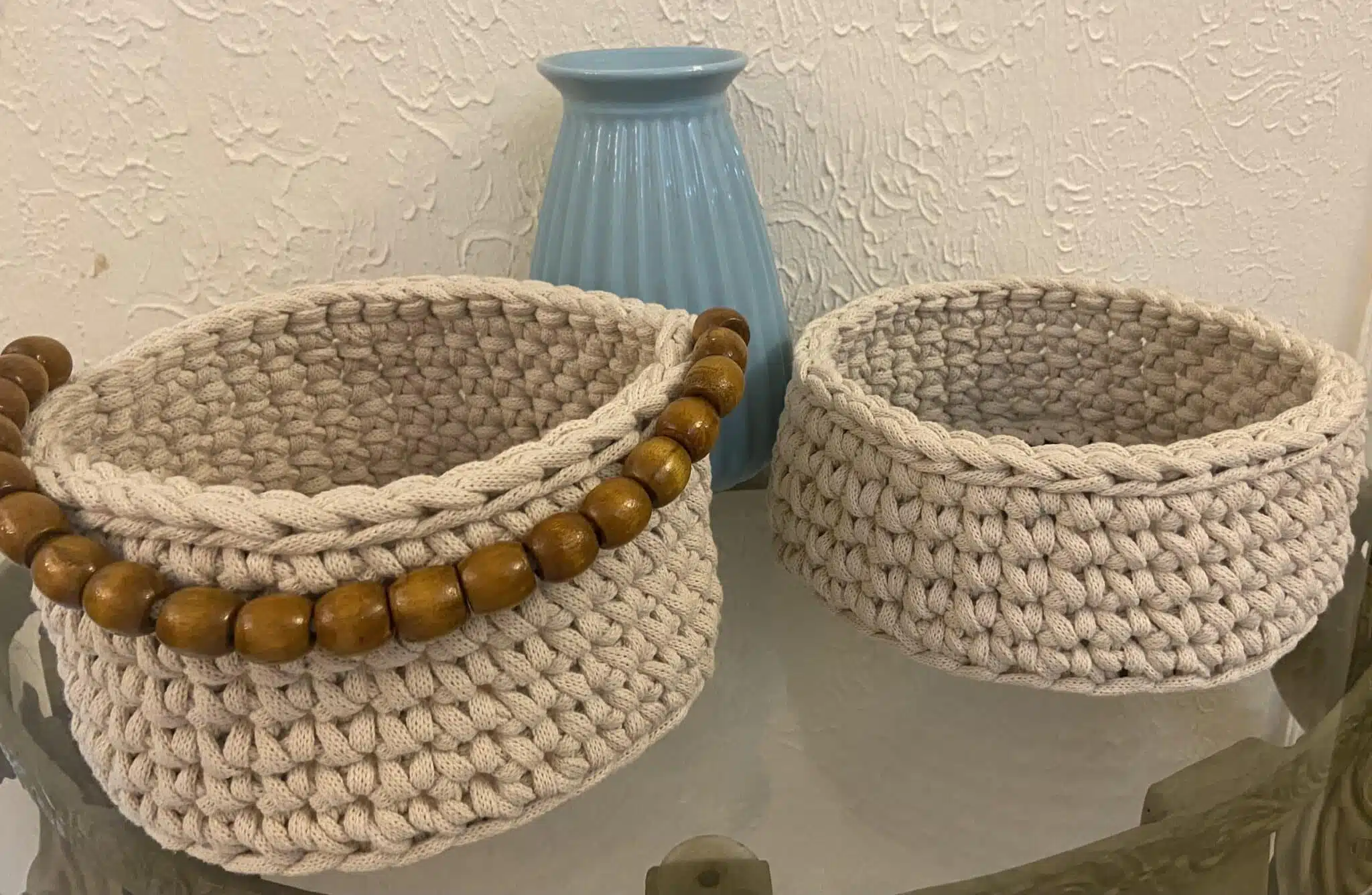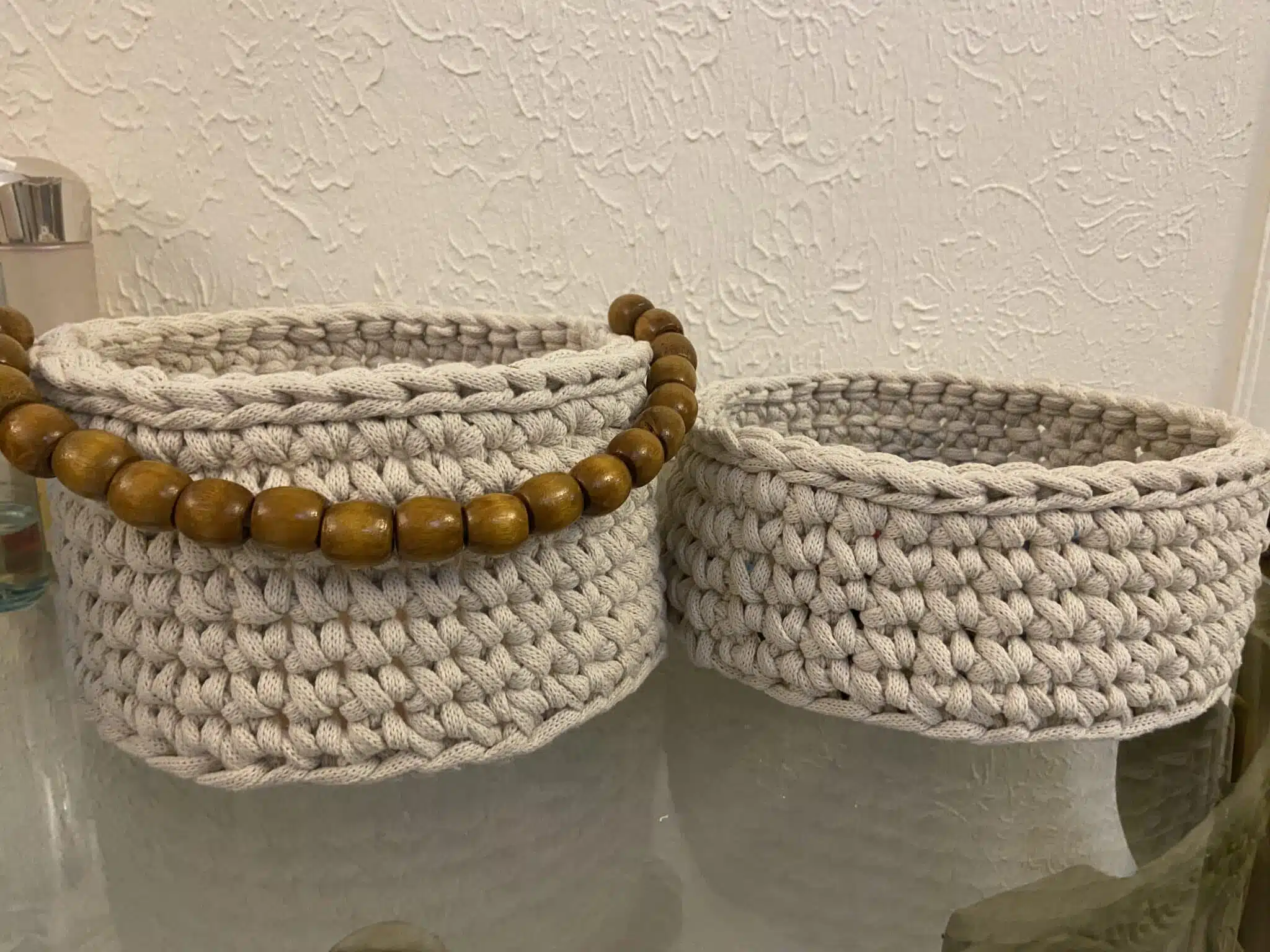 باسكيت من الخيط القطنى وقاعدة خشبية