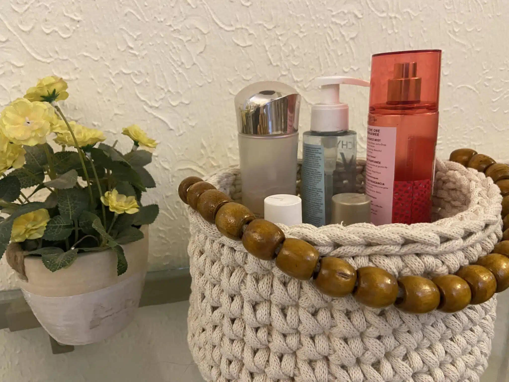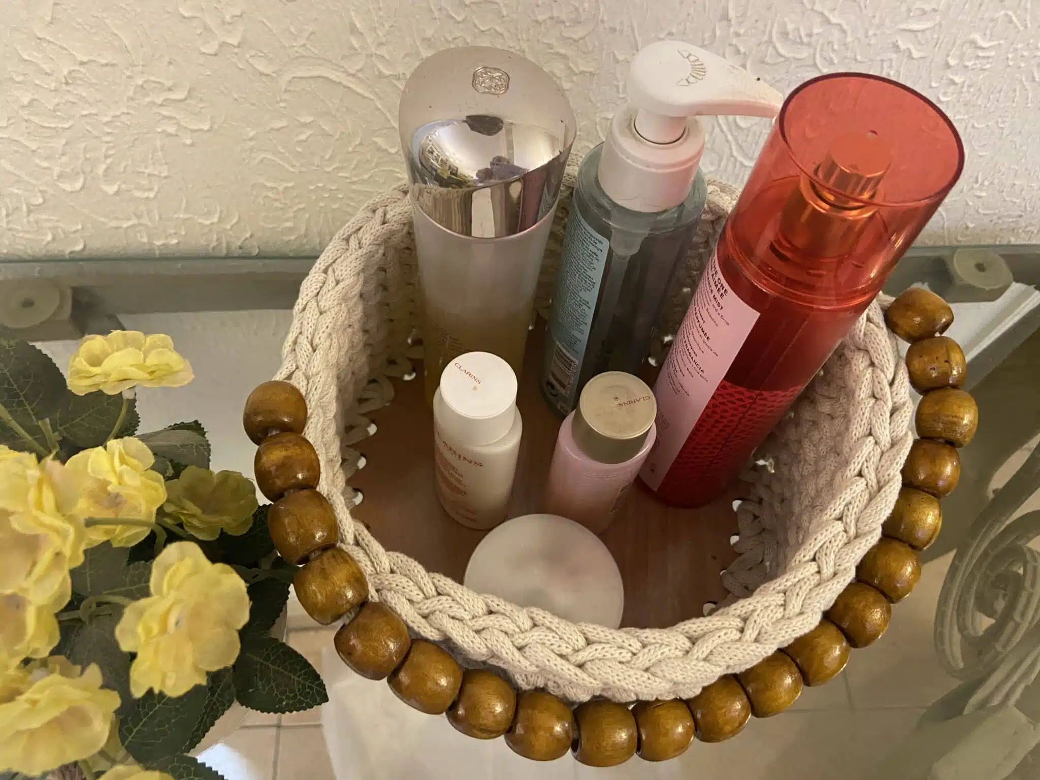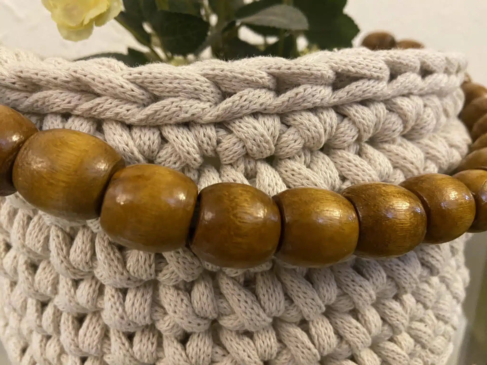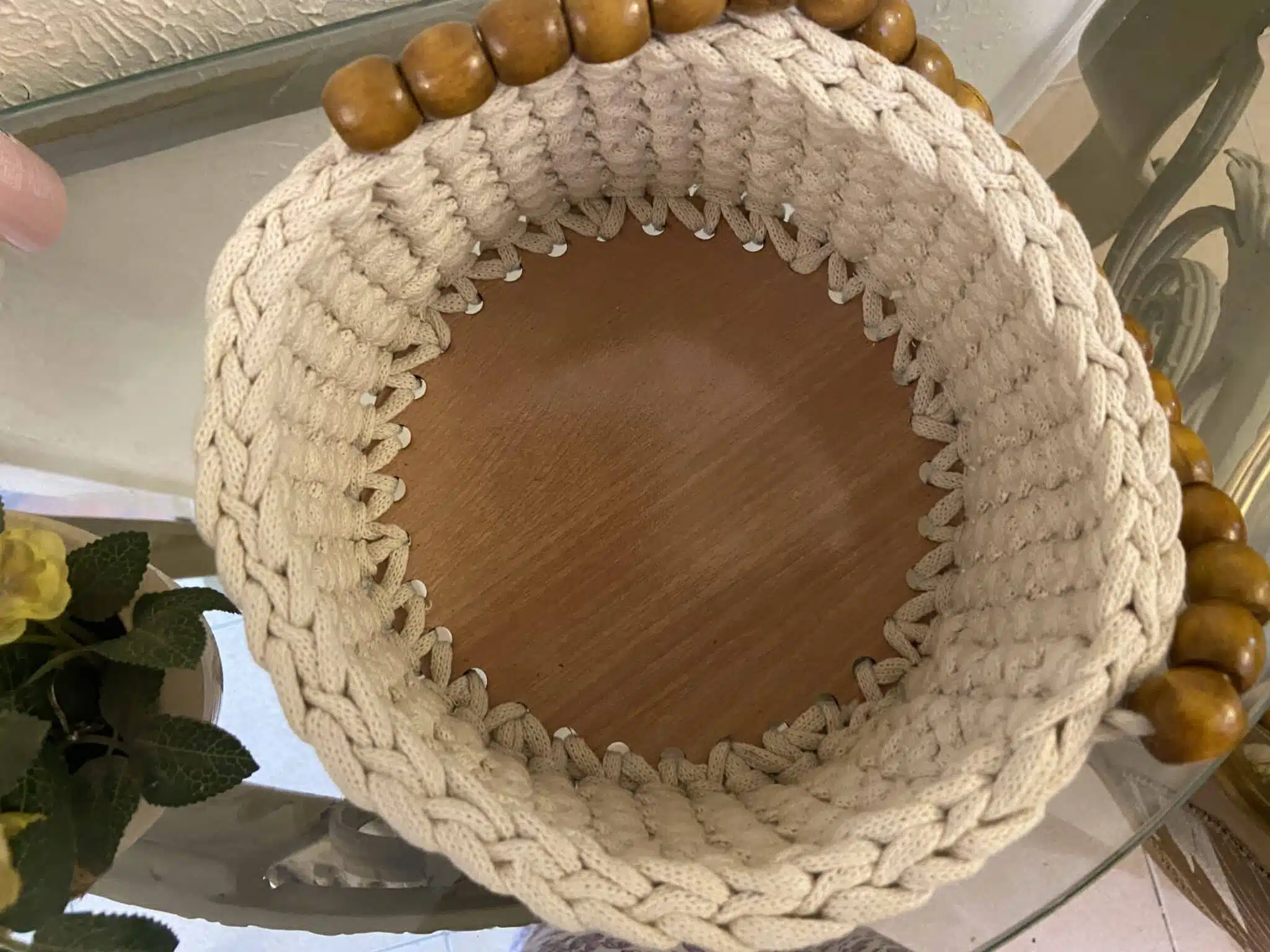 باسكيت بقاعده خشبية دائرية ويد من الخرز الخشبي