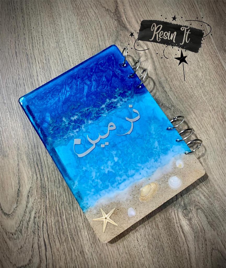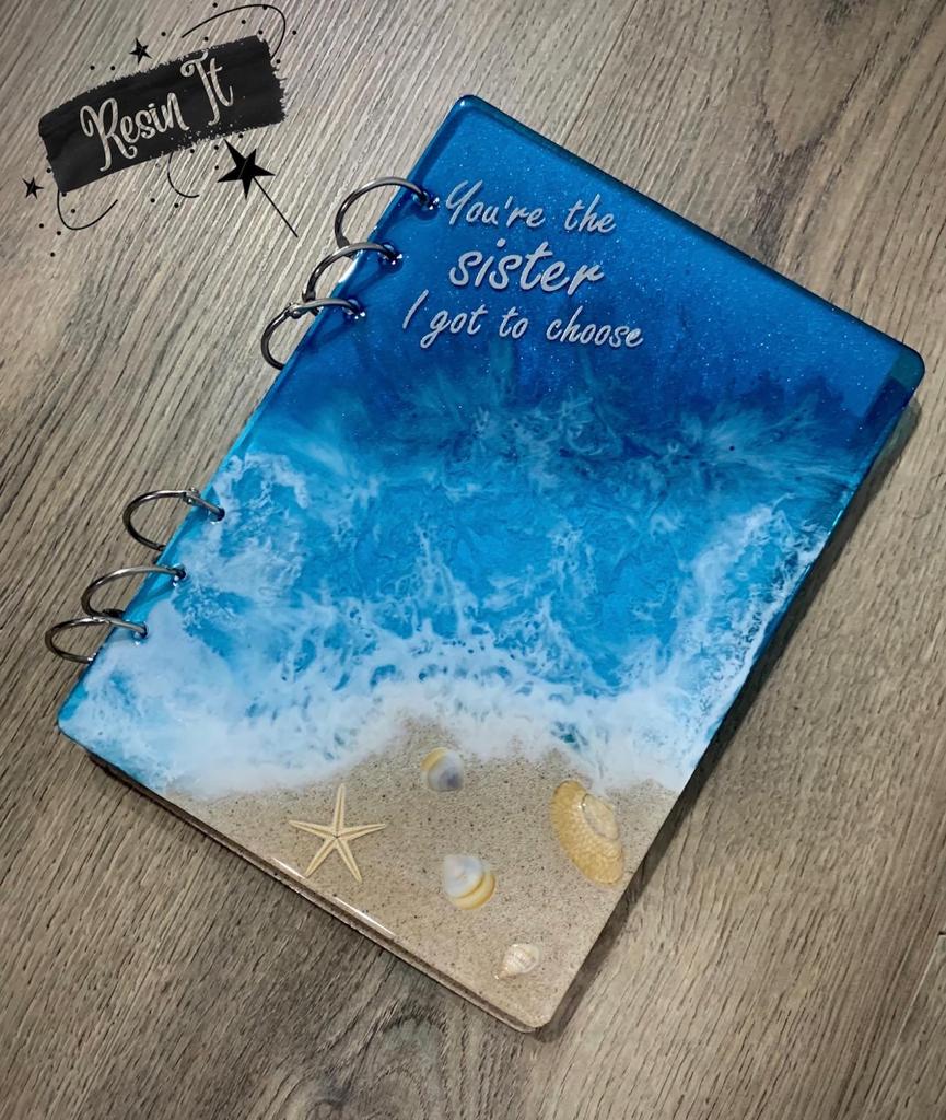 Beach theme resin notebook