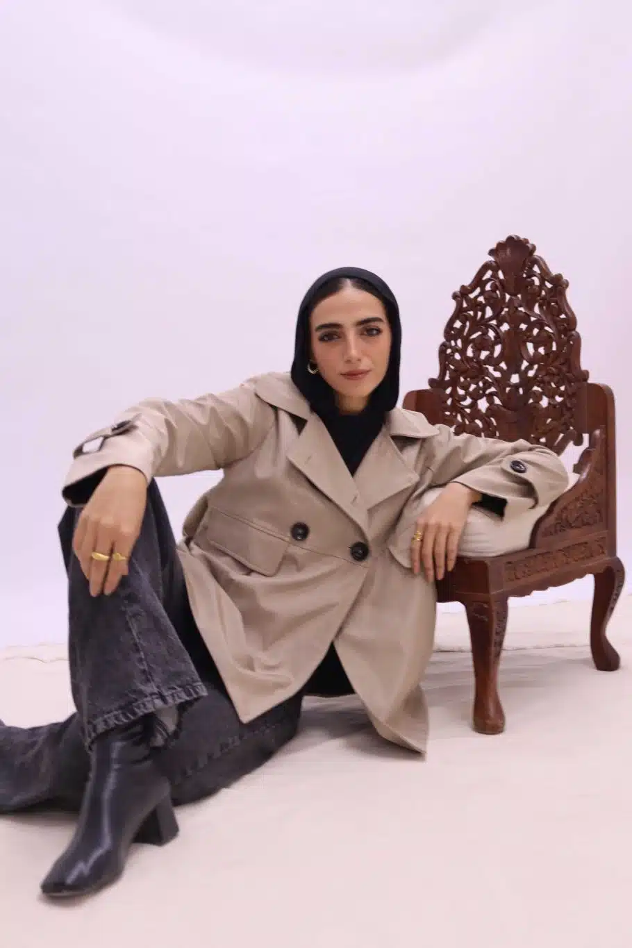- Beige jacket with black strip on the back