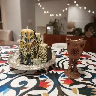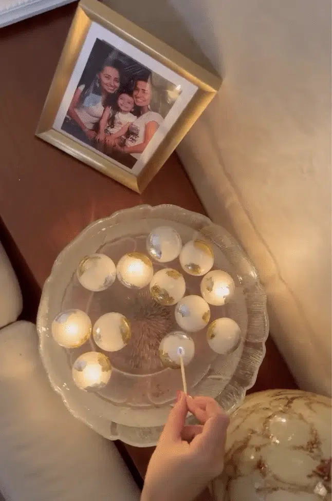 White floating set of 12 candles with a touch of gold and silver leaves makes it elegant and elevate your interior’s look