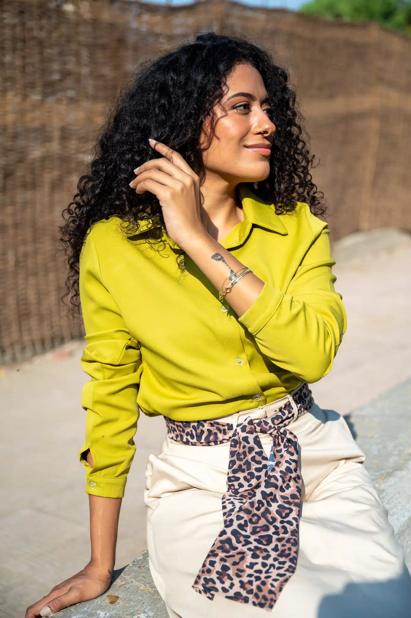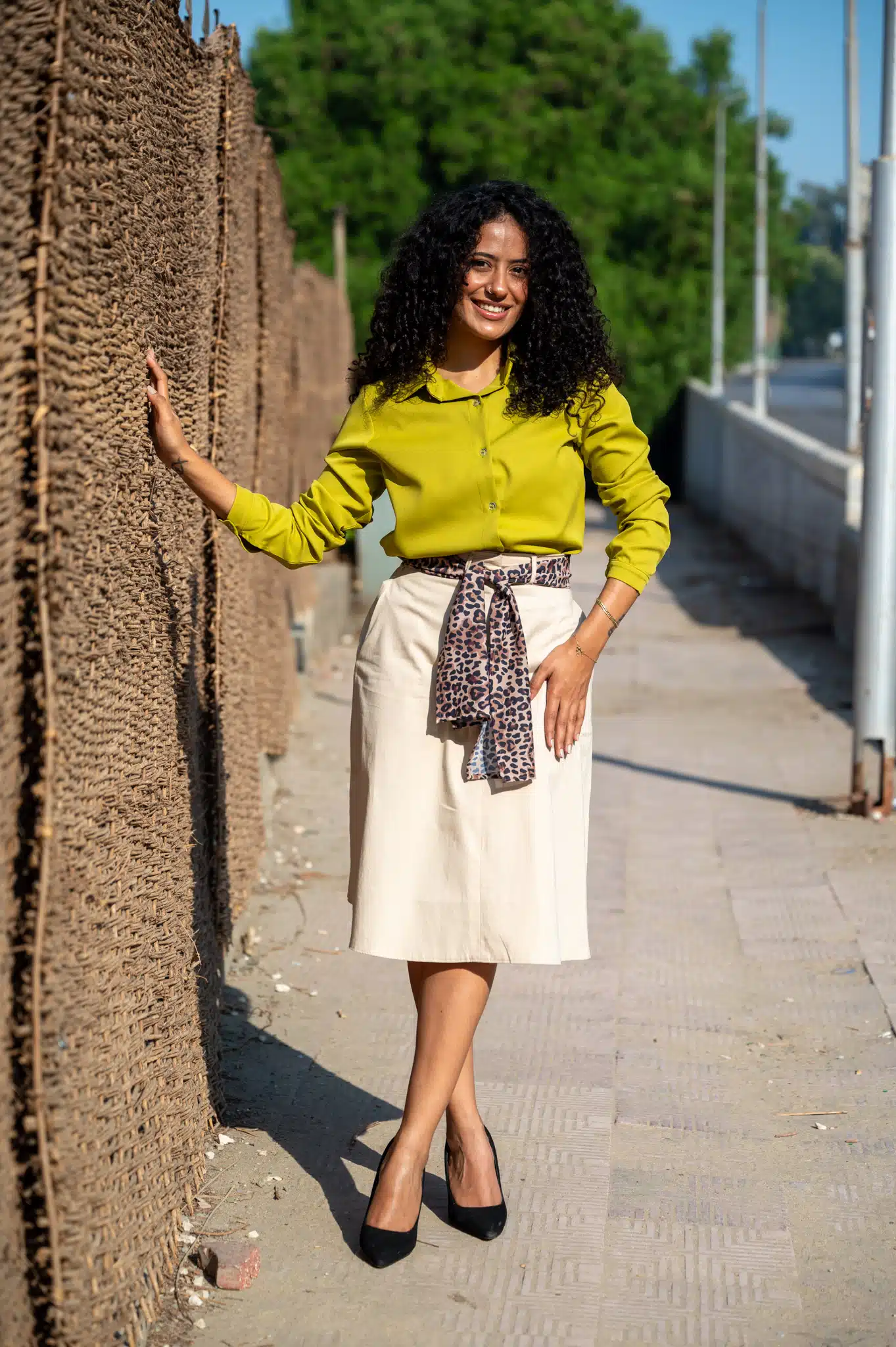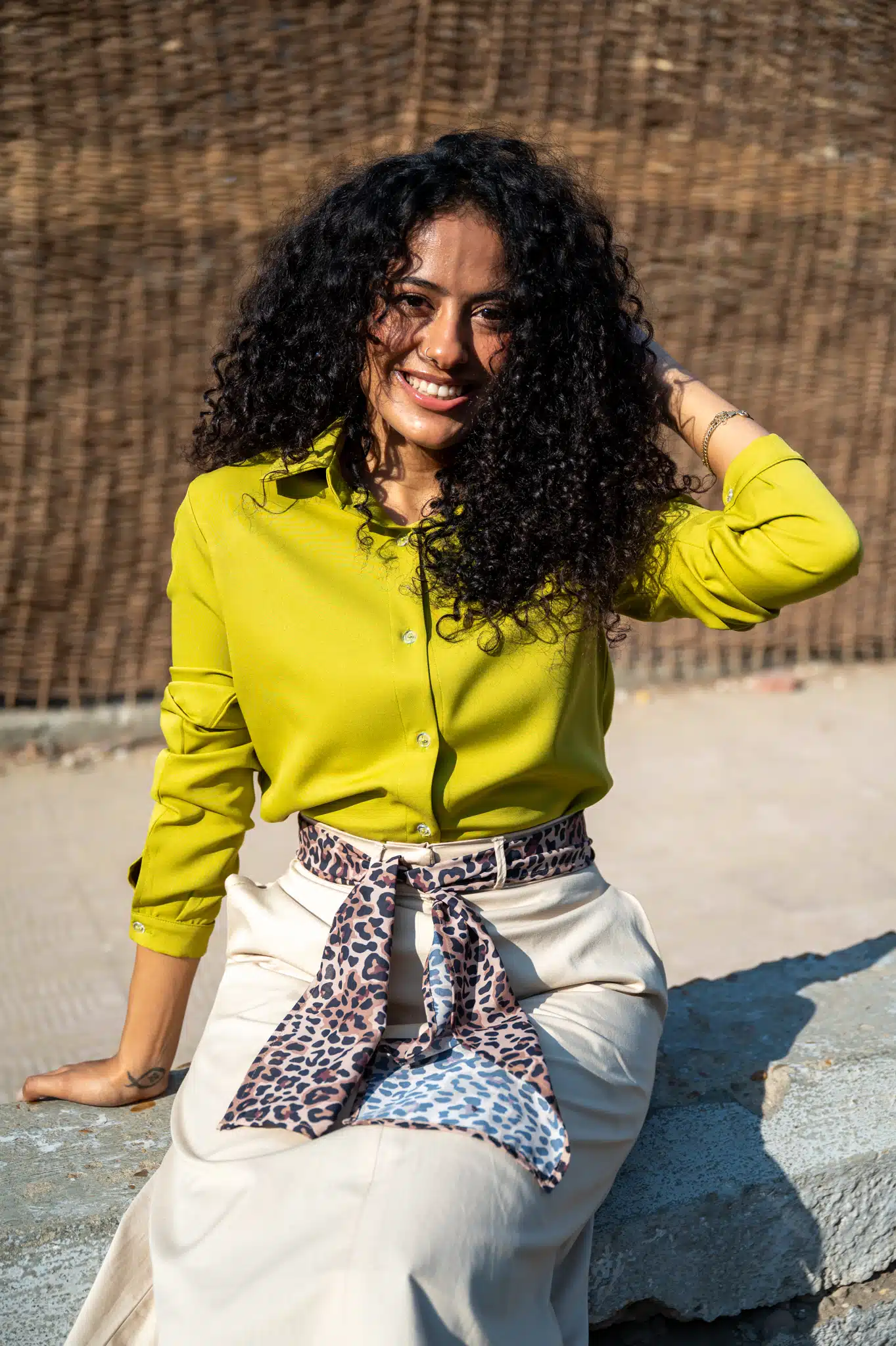 The shirt falls with good ease around the bust. So if you wish for a tighter fit, you can go for a smaller size than the above recommendation. Also, if you wish to have a more ample over-sized look, go for one size bigger.