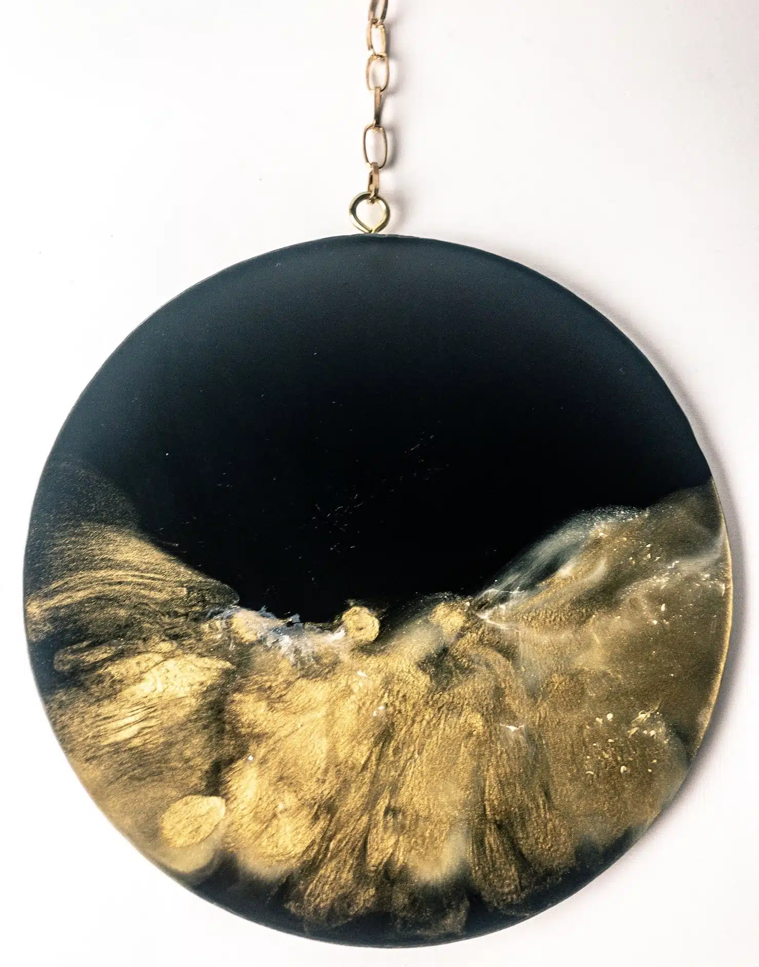 2 Black& gold epoxy resin wall art with a gold chain,, Each is 19cm