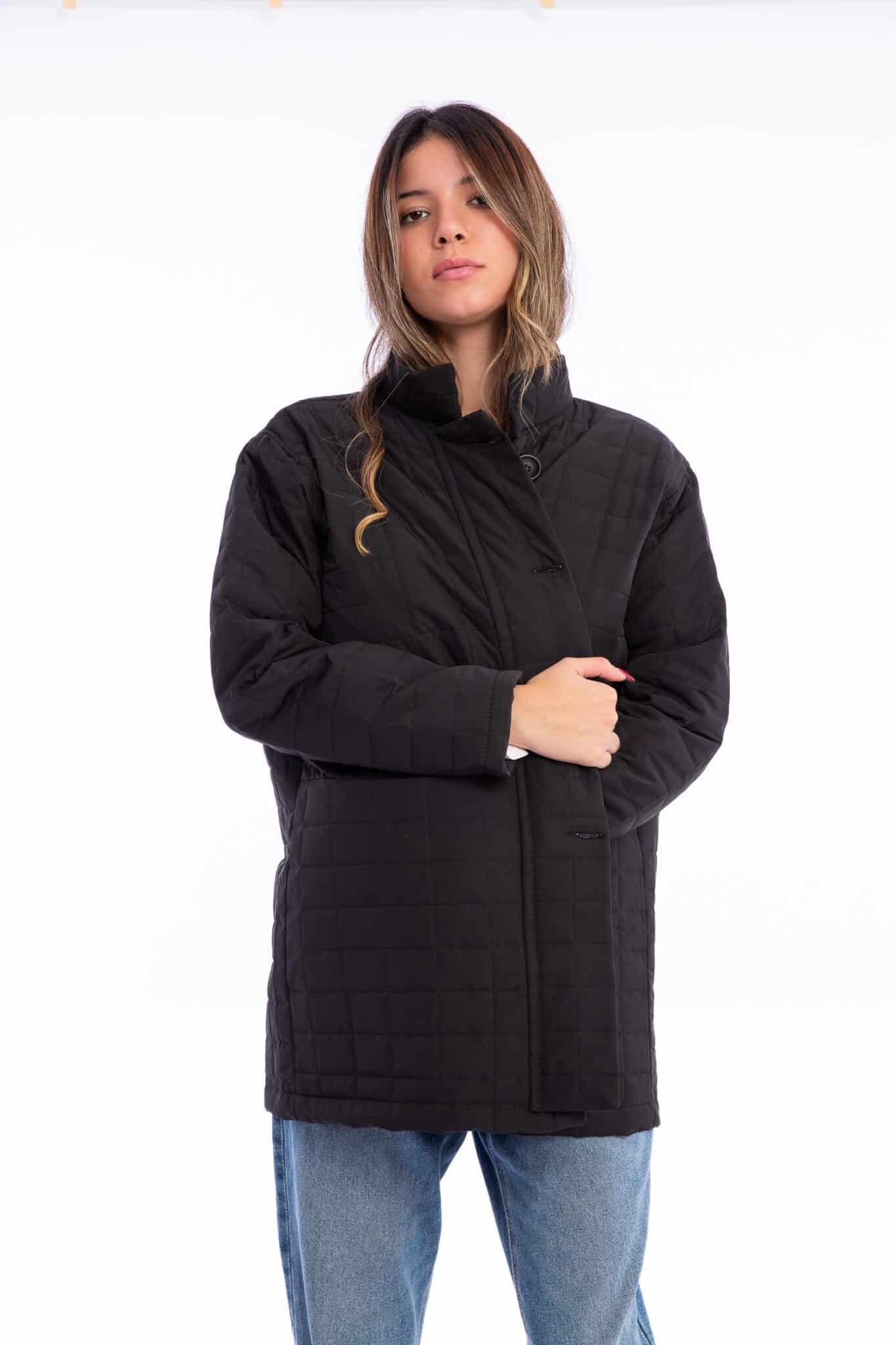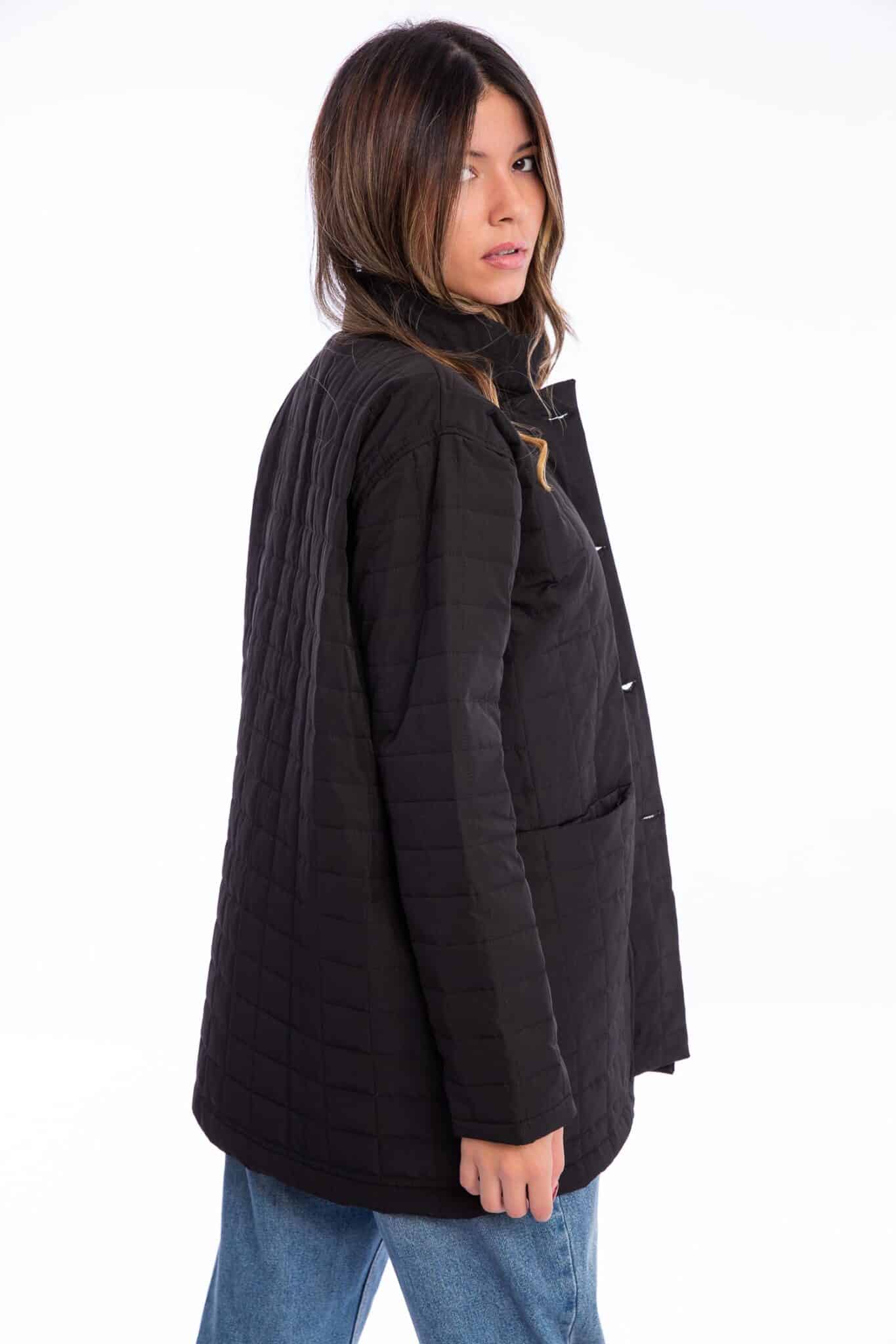 Description: quilt jacket with front buttons and pockets