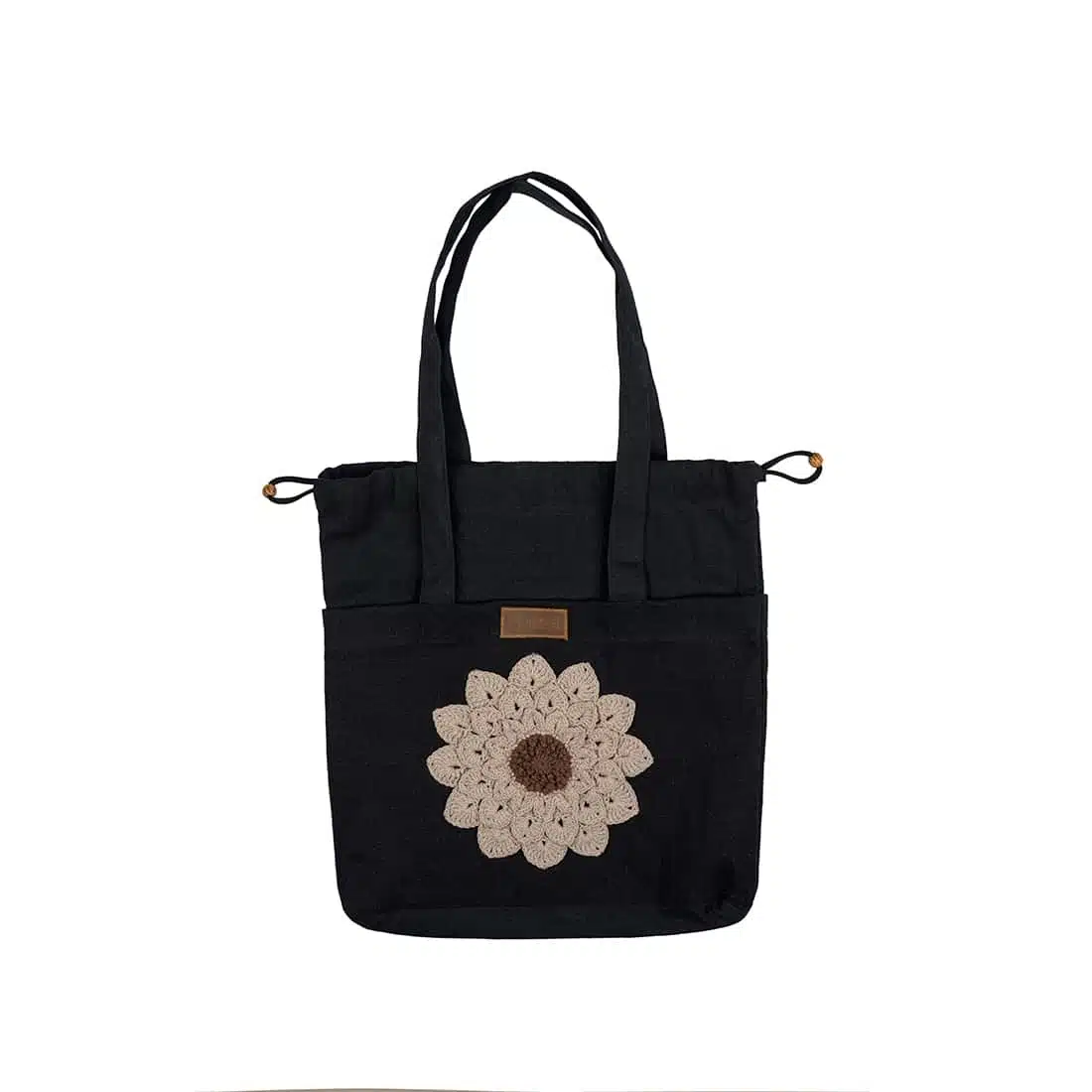 Tote bag with 2 large outer pockets and a small inner pocket.