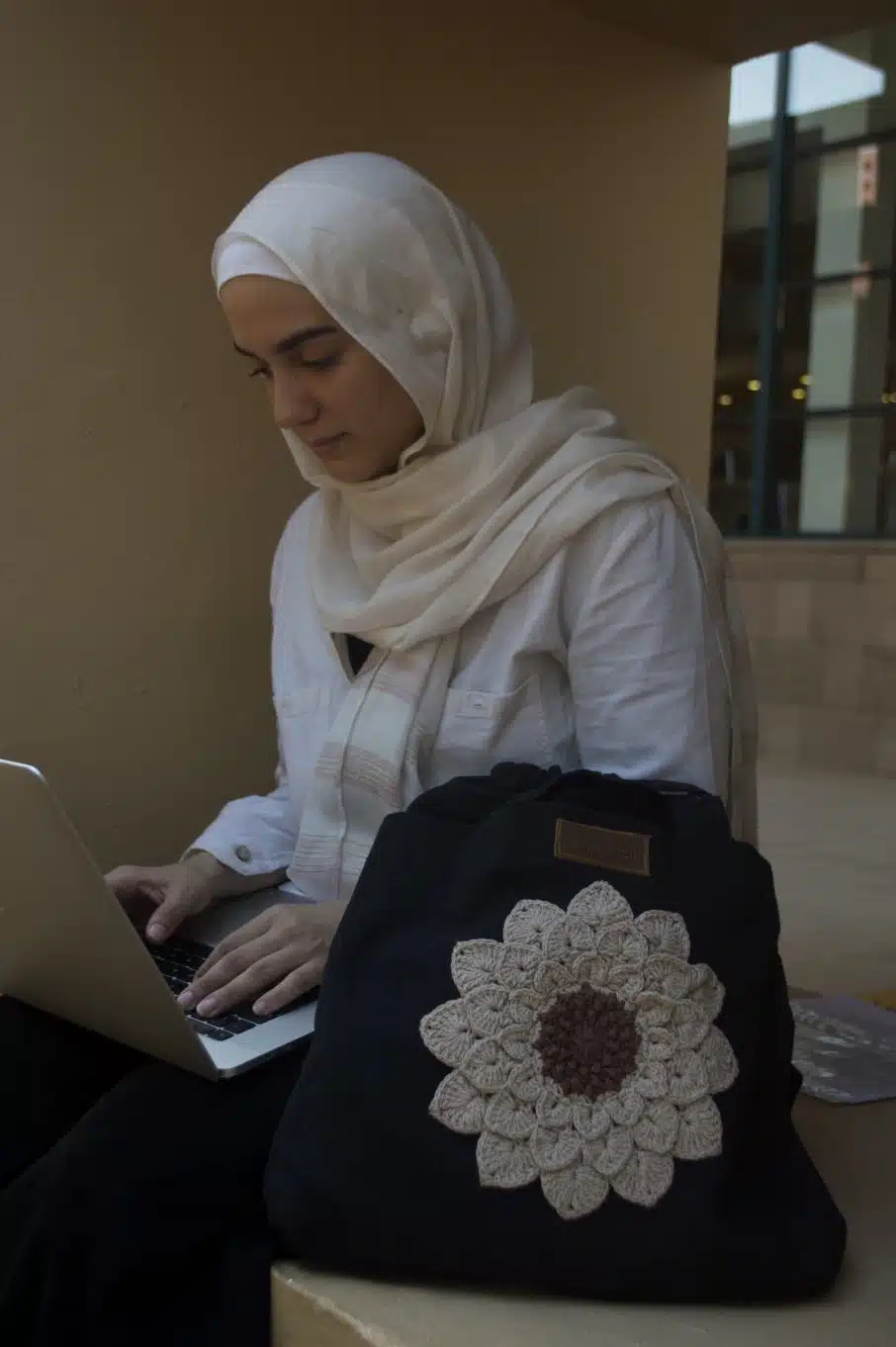 The flower is made of cotton yarn.