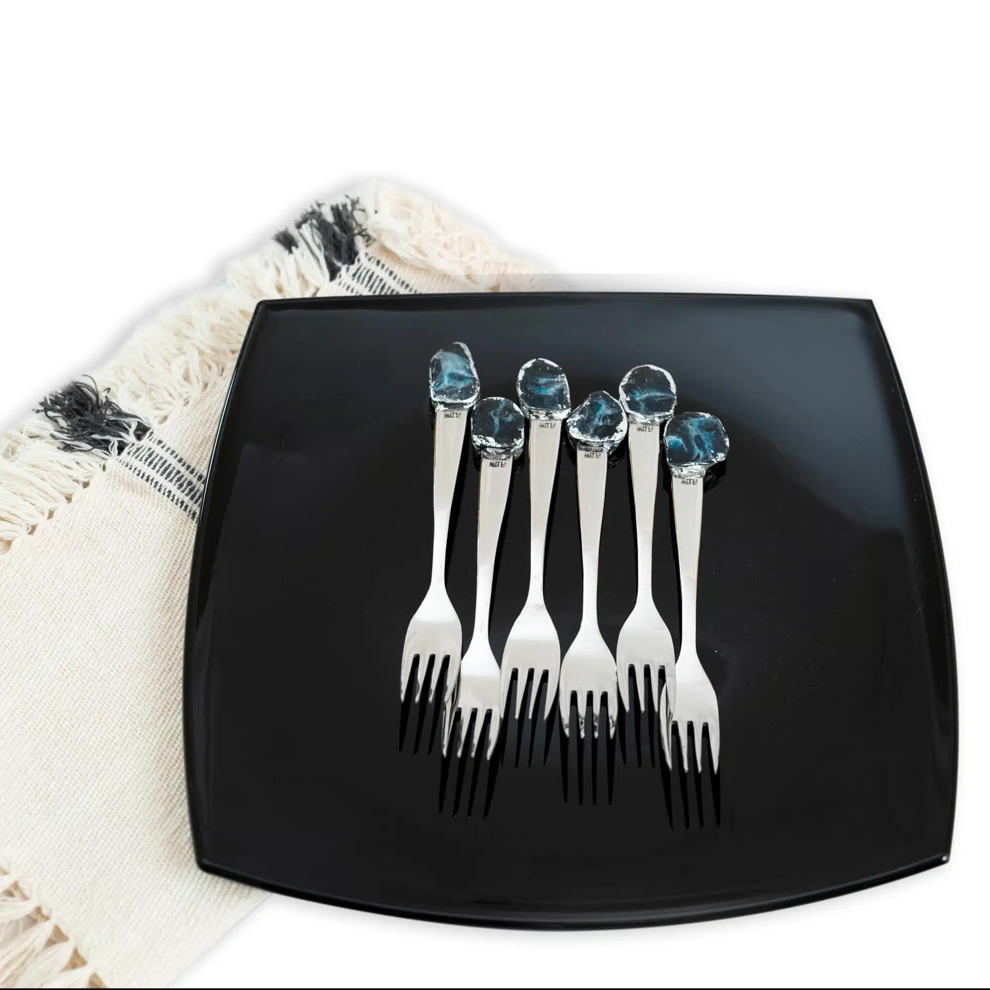 •Stainless-steel flatware, with a handmade crystal of epoxy resin & surrounded with silver leaves