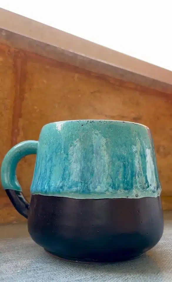handmade mug in black and turquoise color with comfy handling,microwave and dishwasher-safe,250ml