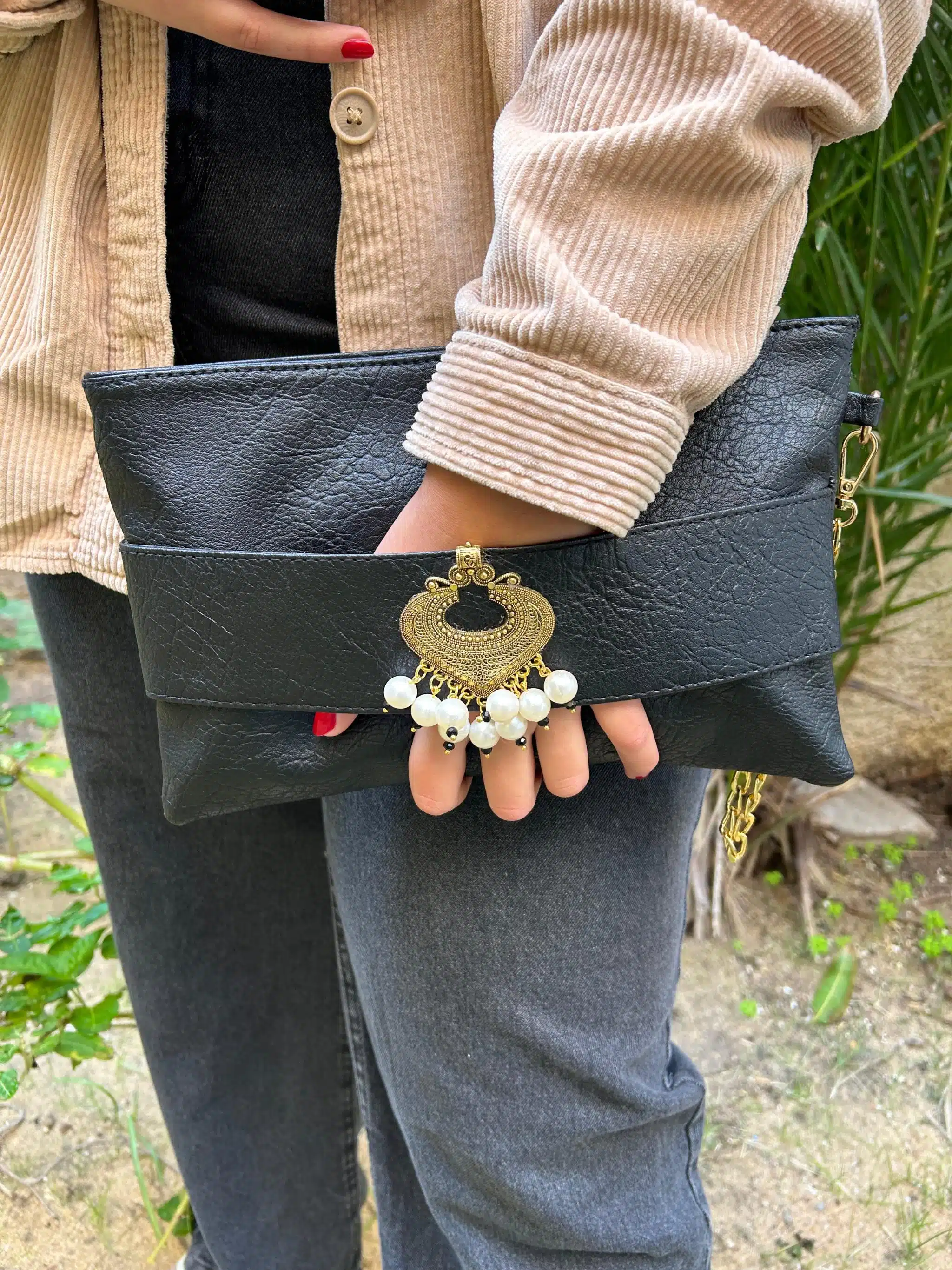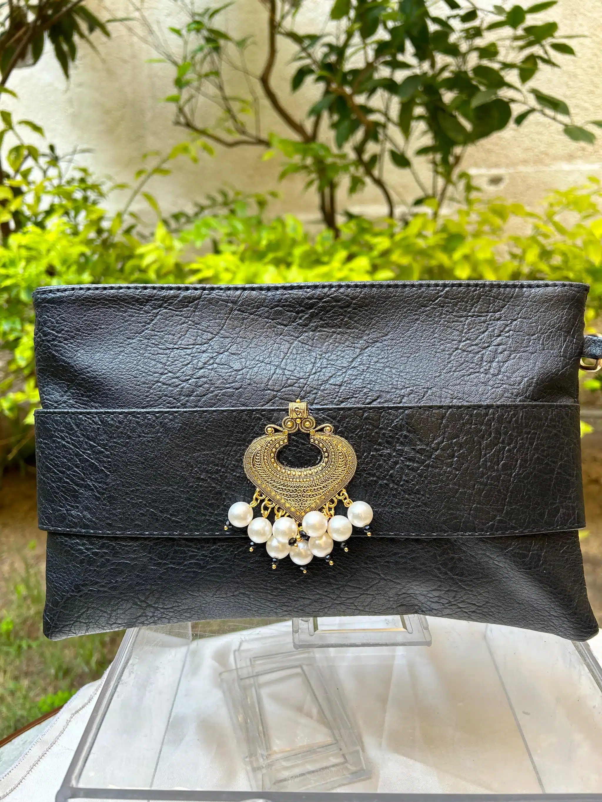 zipper black clutch
