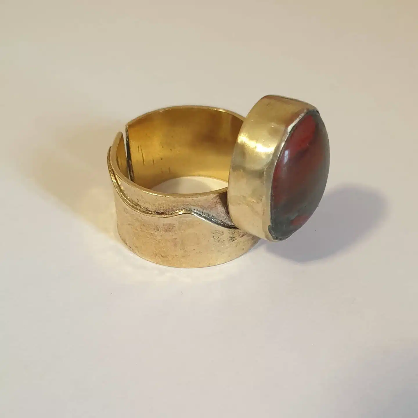 Partially textured copper ring with blood agate stone.
