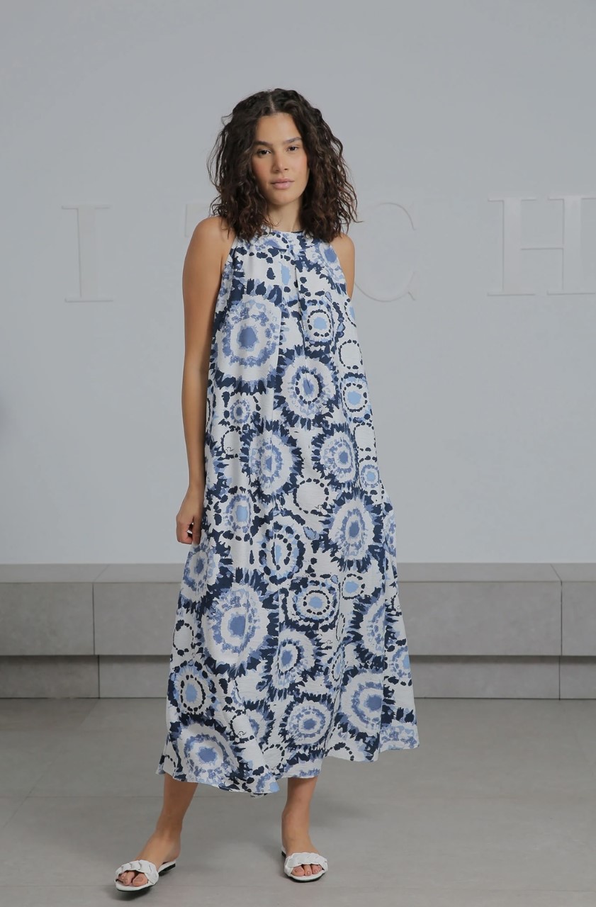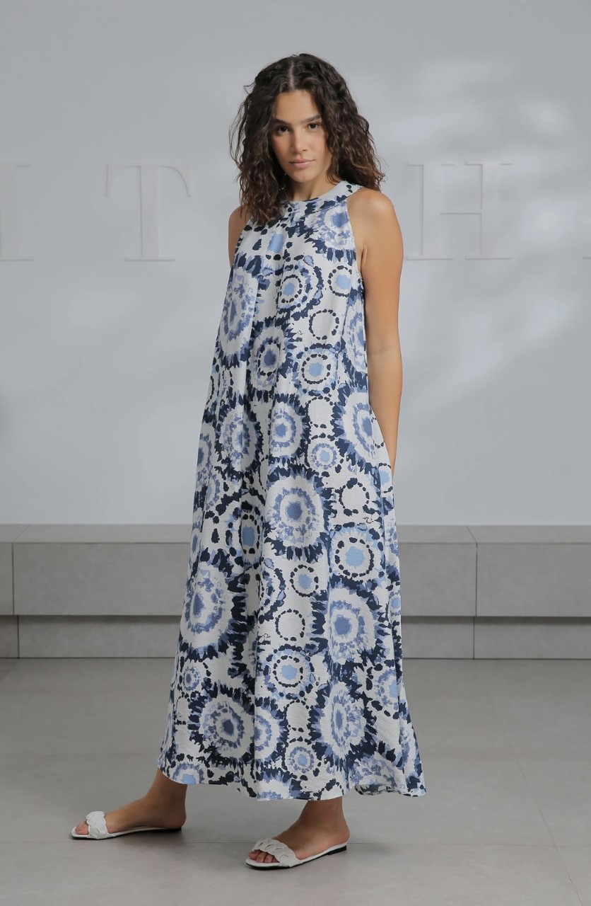 blue boho sleeveless dress
