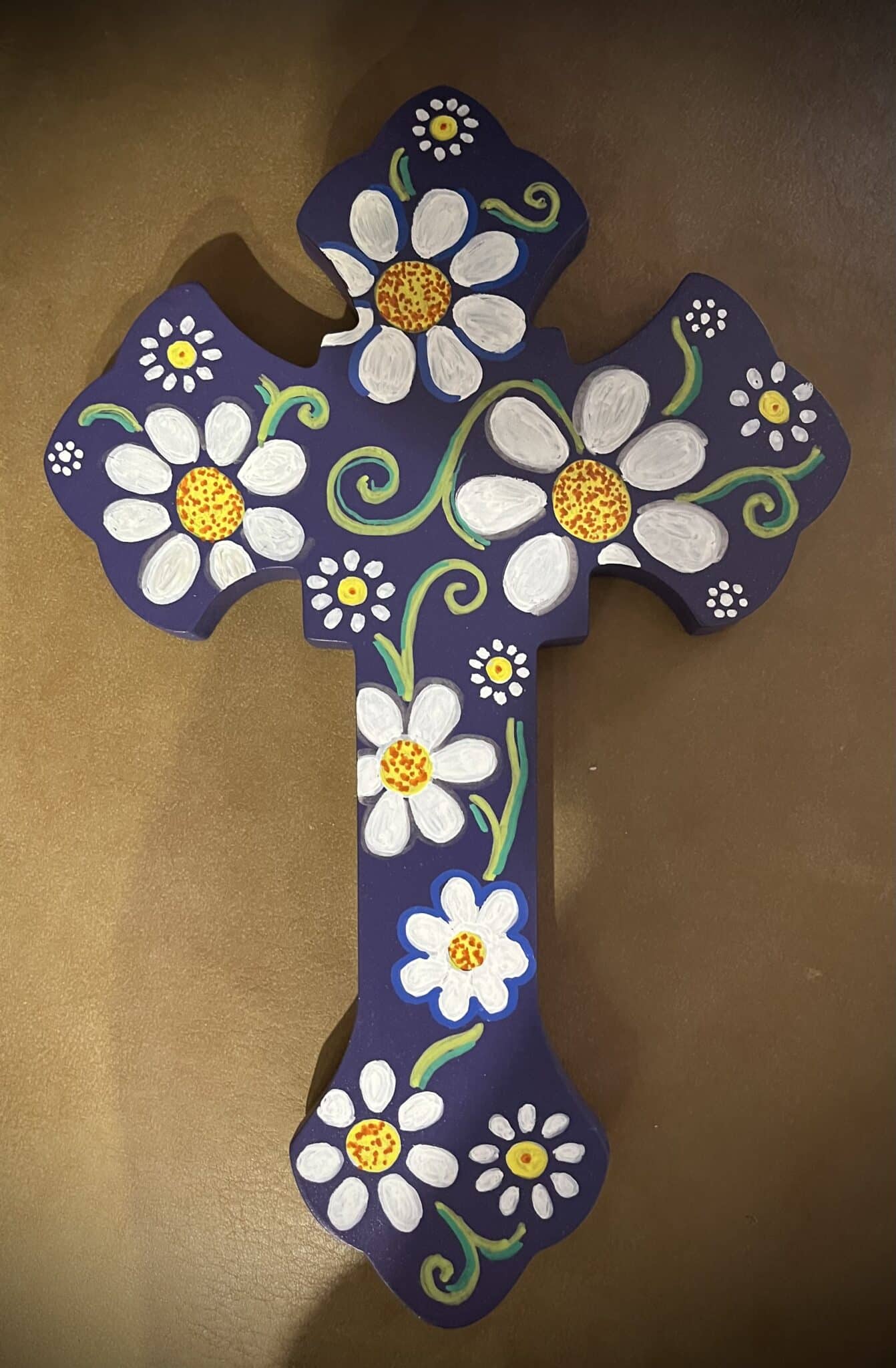 Blue hand painted flower breeze on wooden cross. Easy to hang it on wall at your children rooms or a great gift for all seasons. Blessing is always needed at our homes. Size 20*30 cm. Perfect to match any style