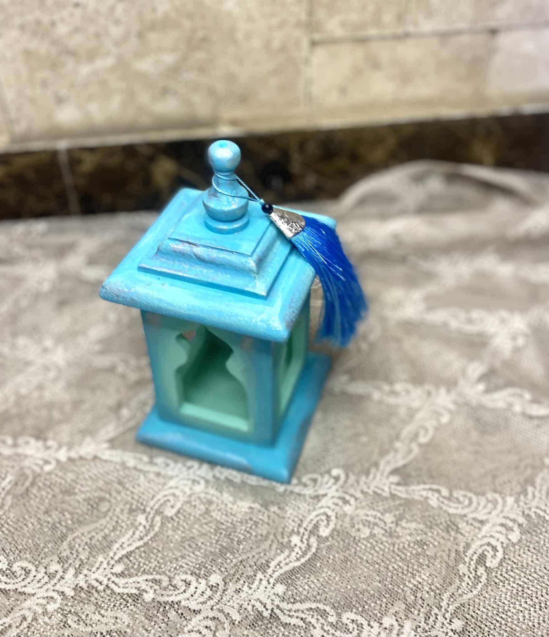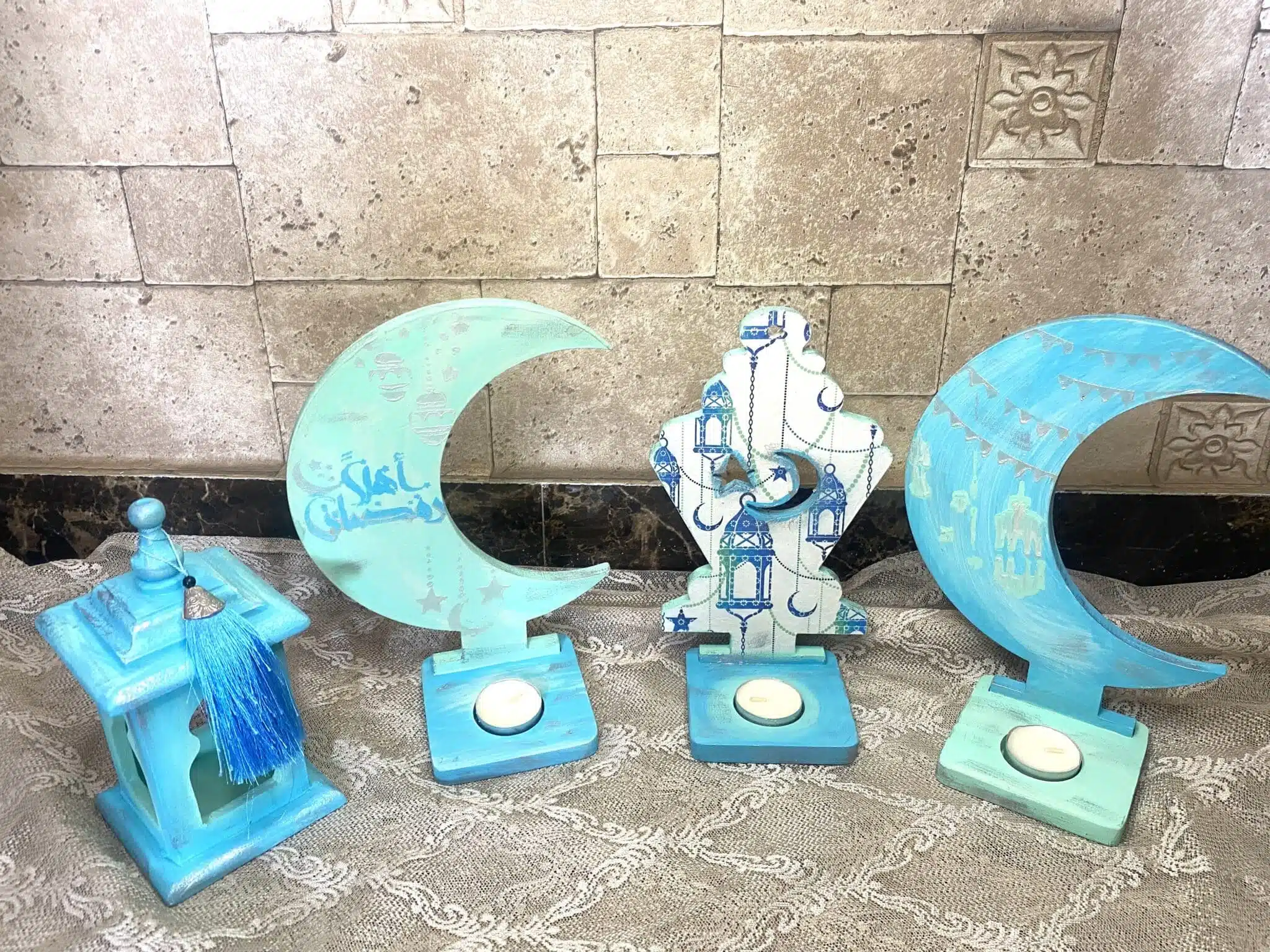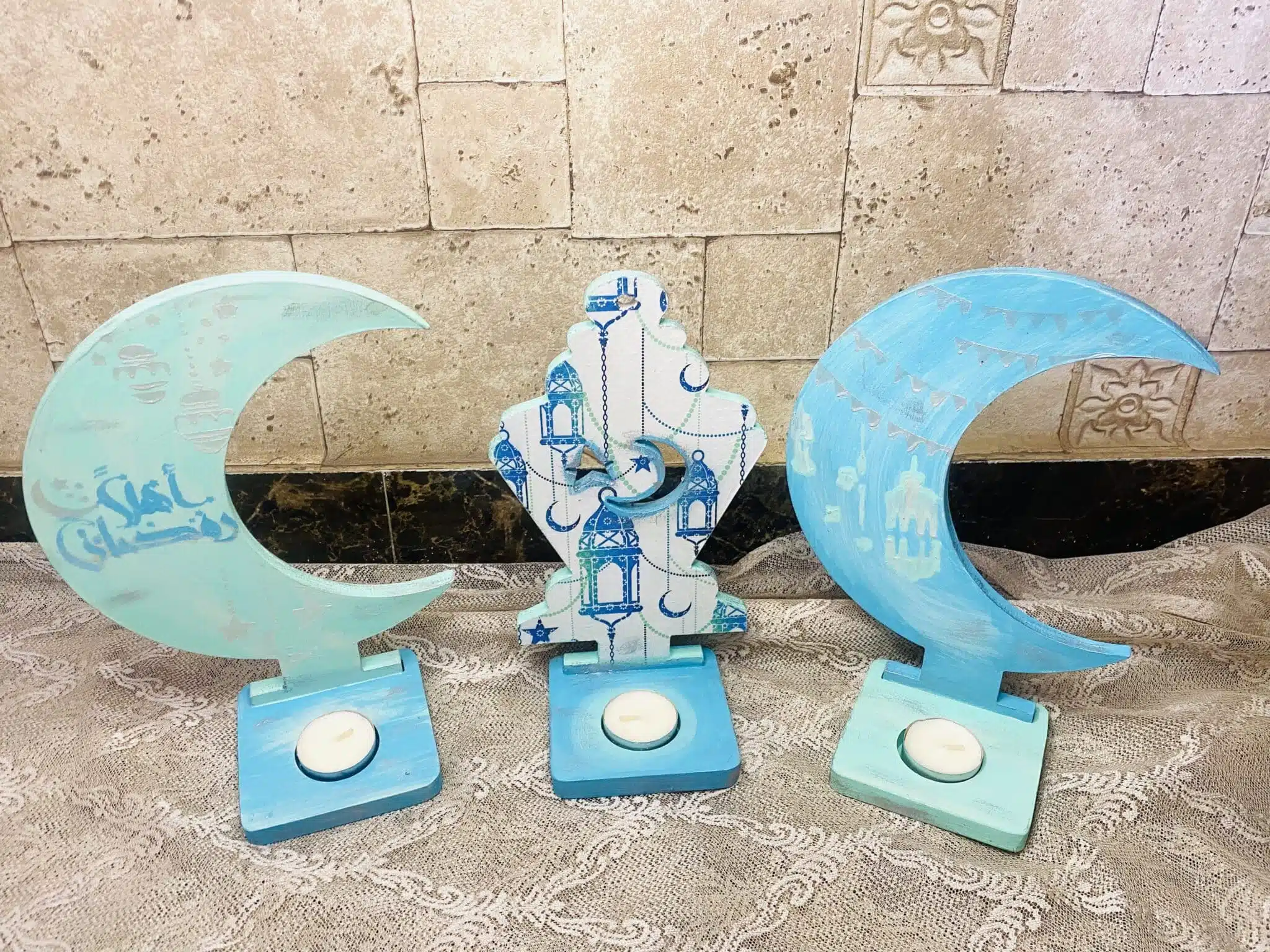 Wooden decorative set for Ramadan: 3 candle holders and small fanous