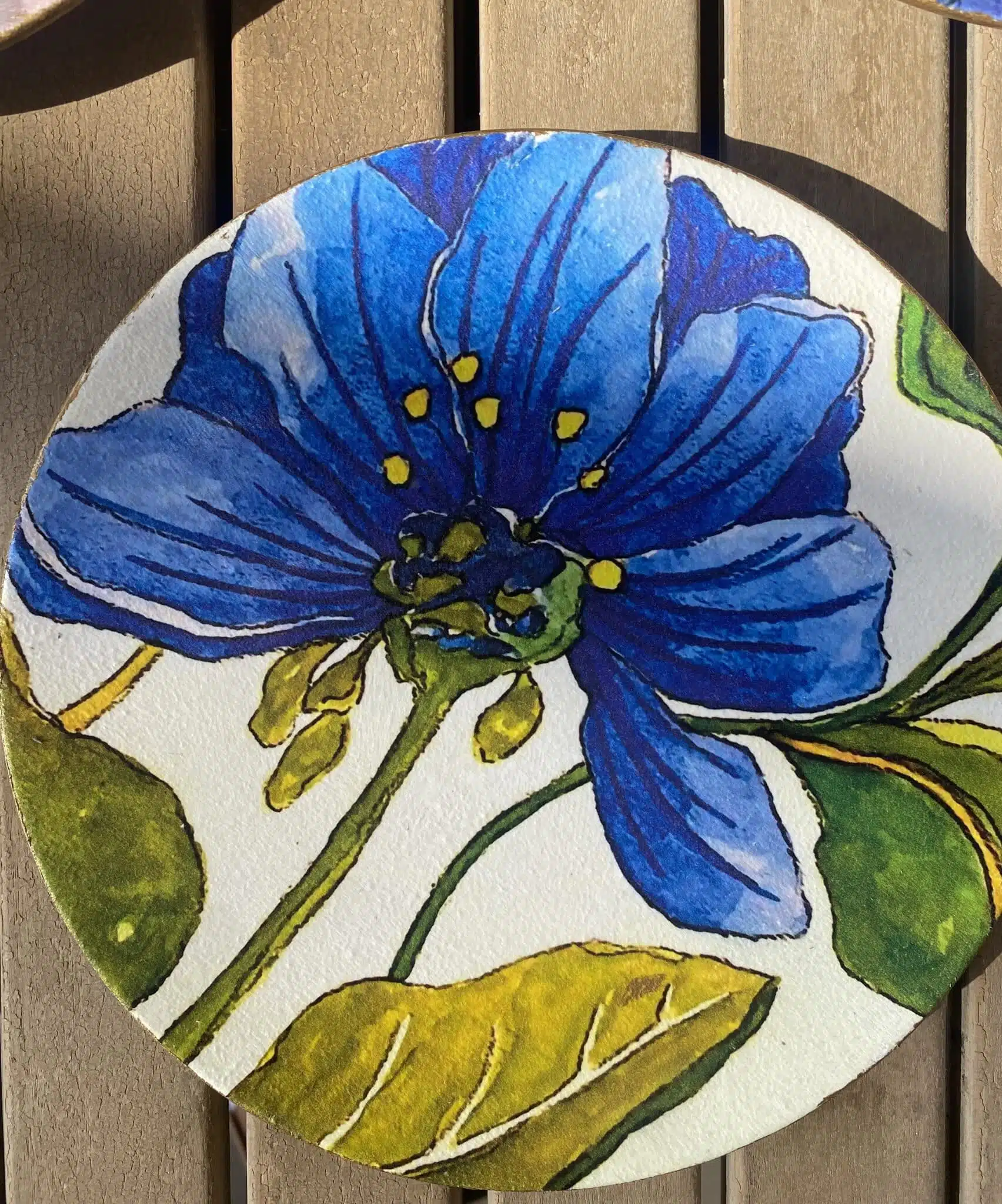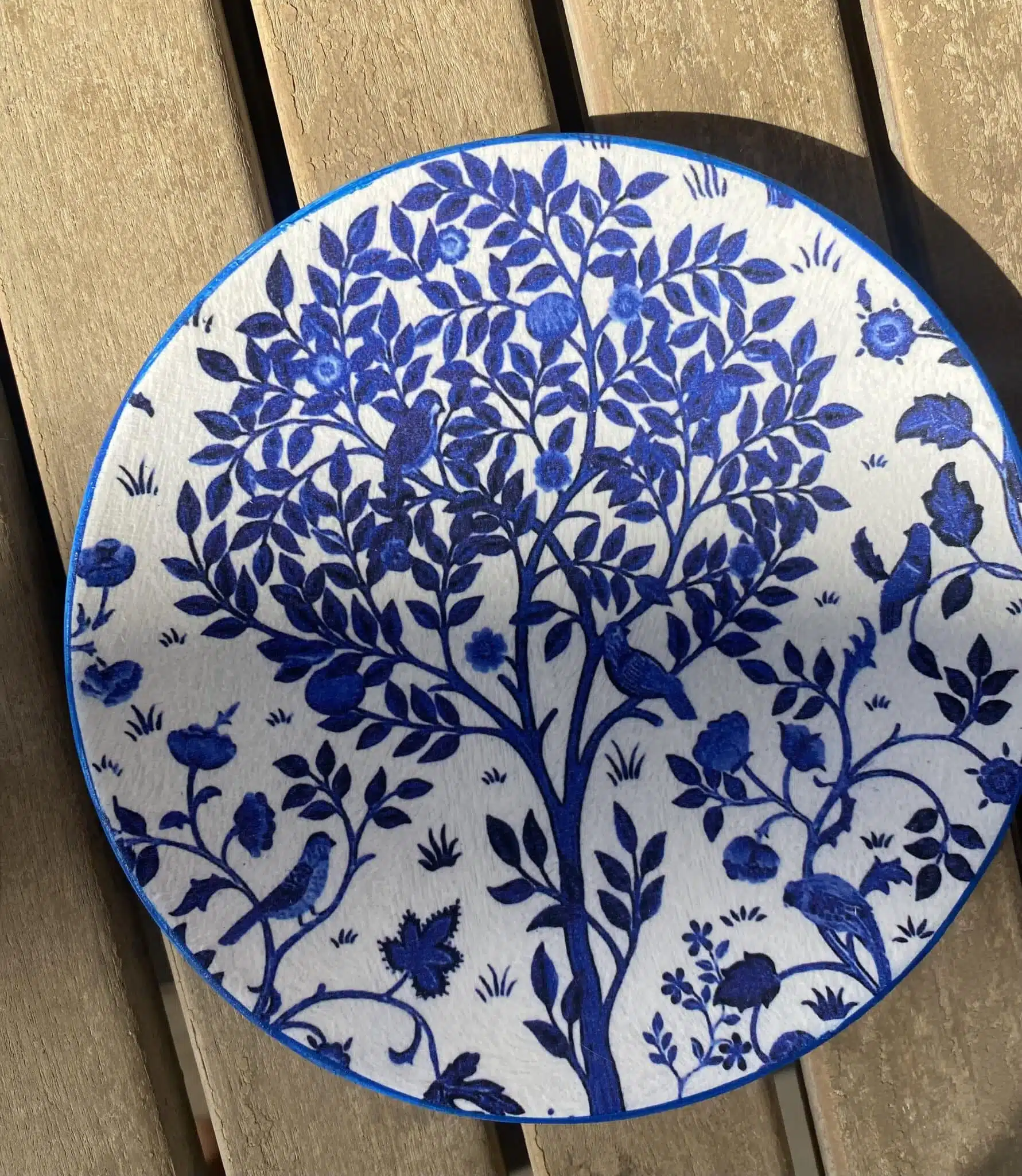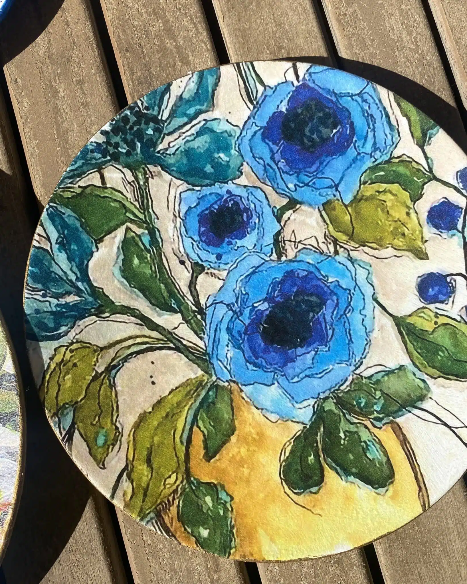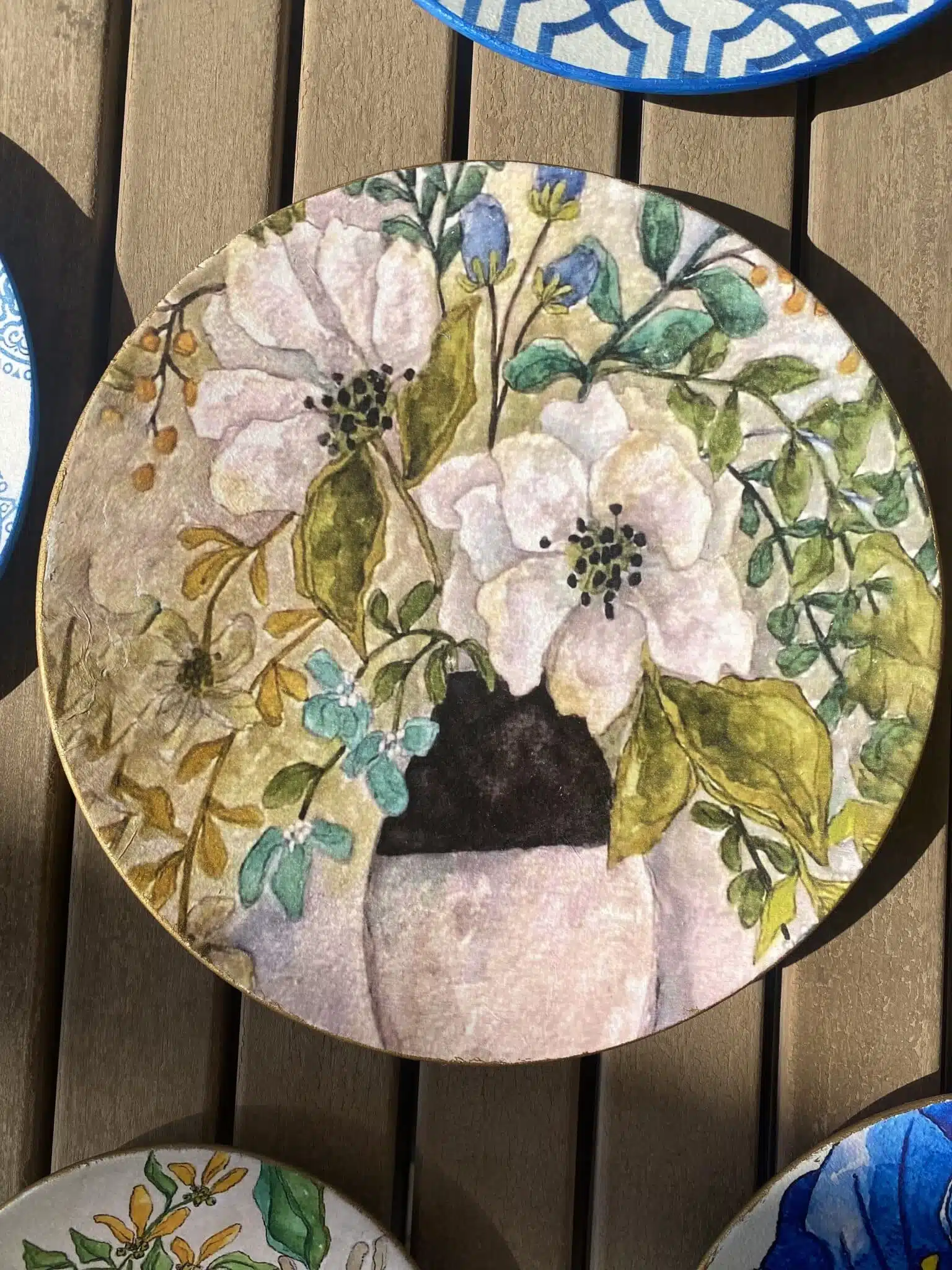Decoupaged Porcelain plates in blue flowers theme