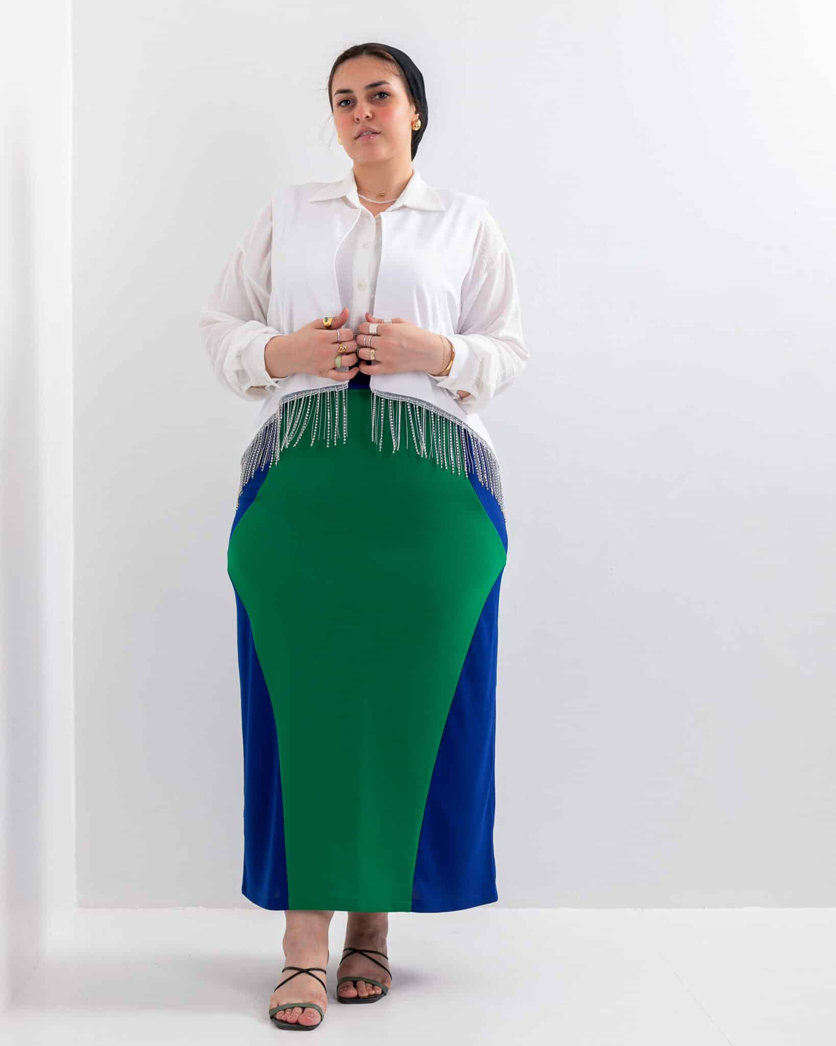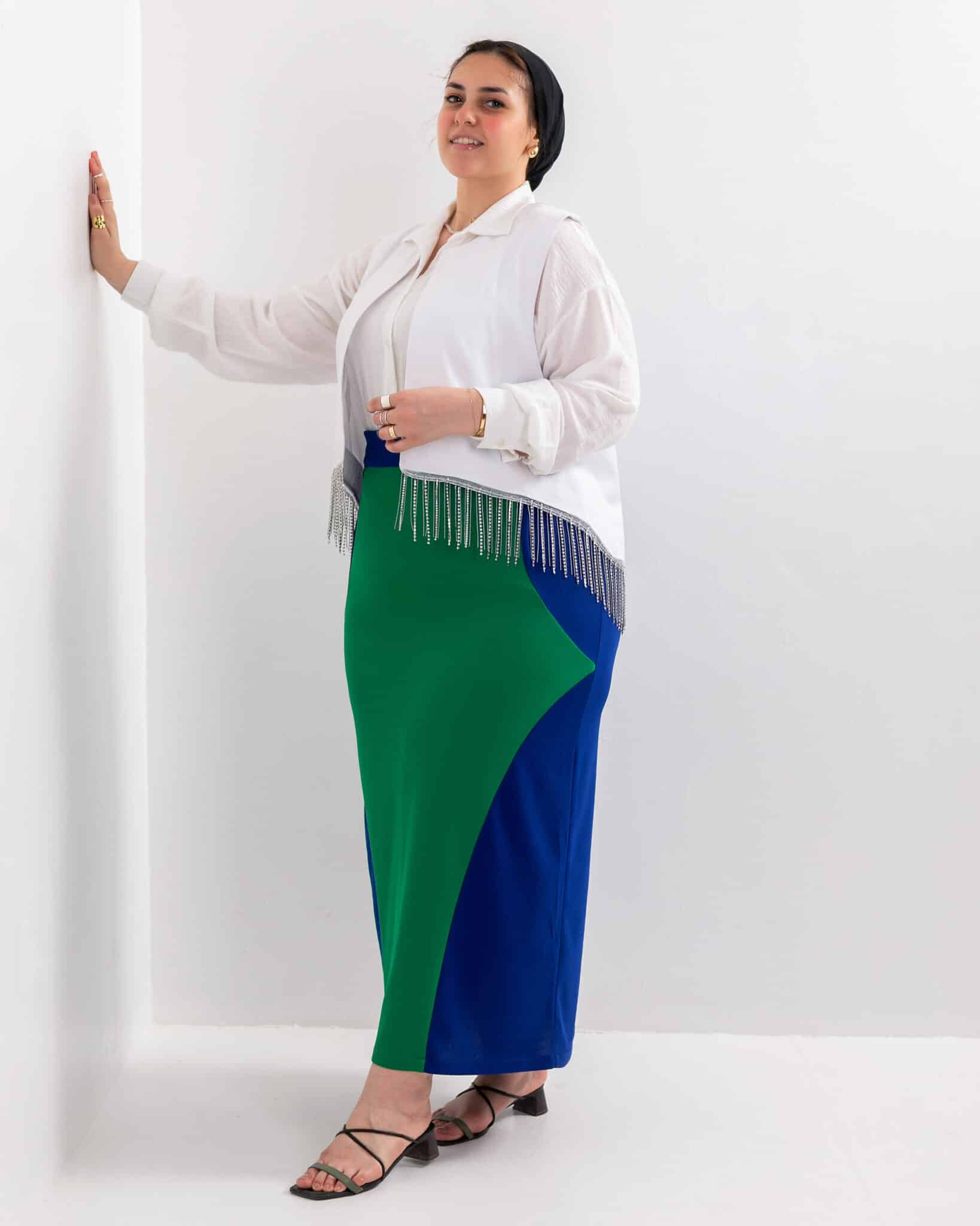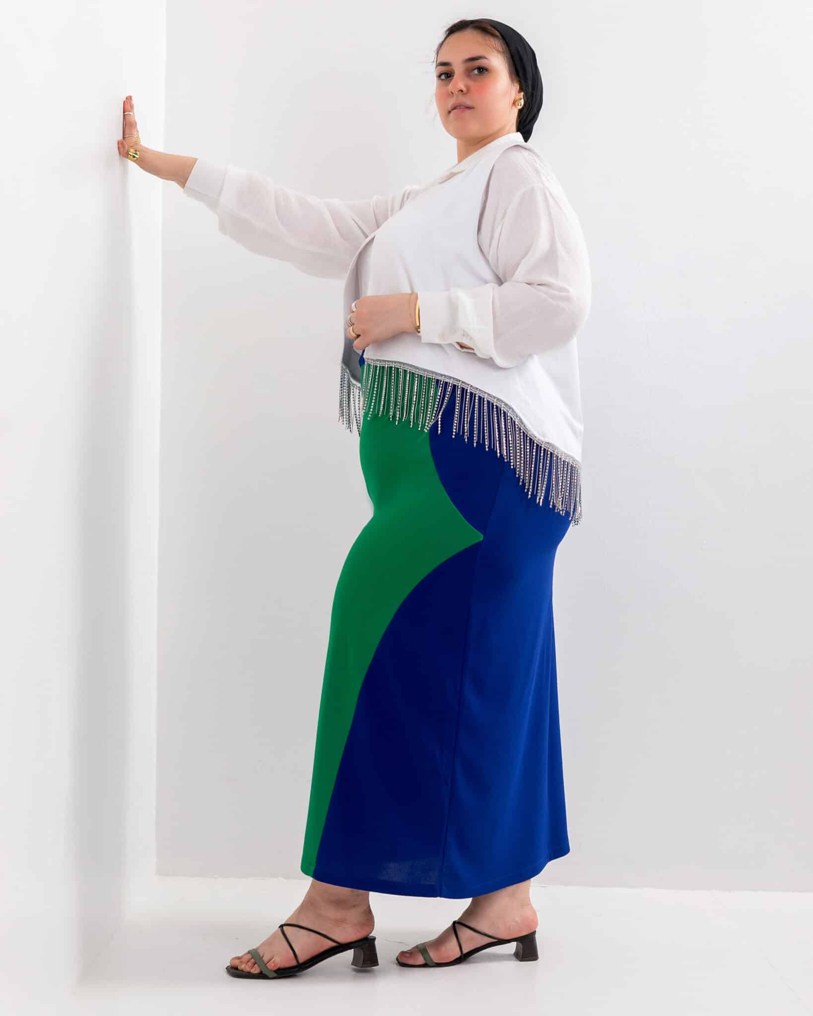 Crepe royal blue green skirt