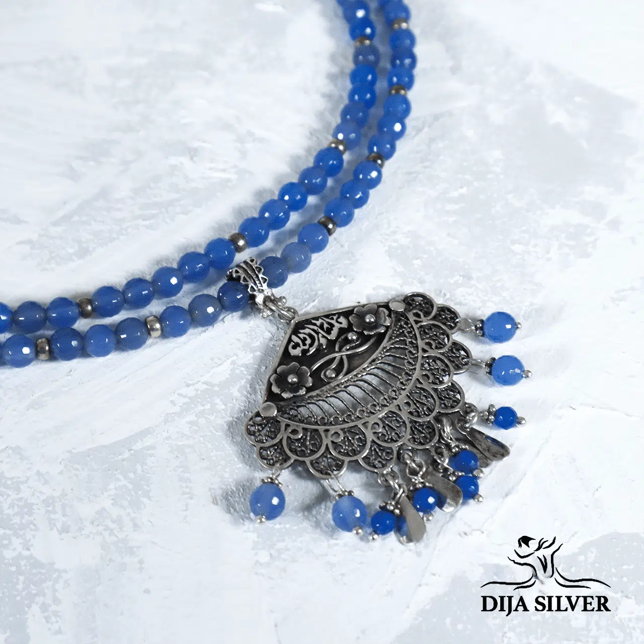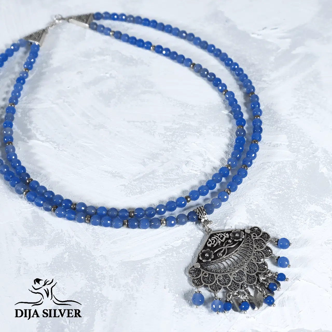 silver 925 necklace with rare bluish jade stones