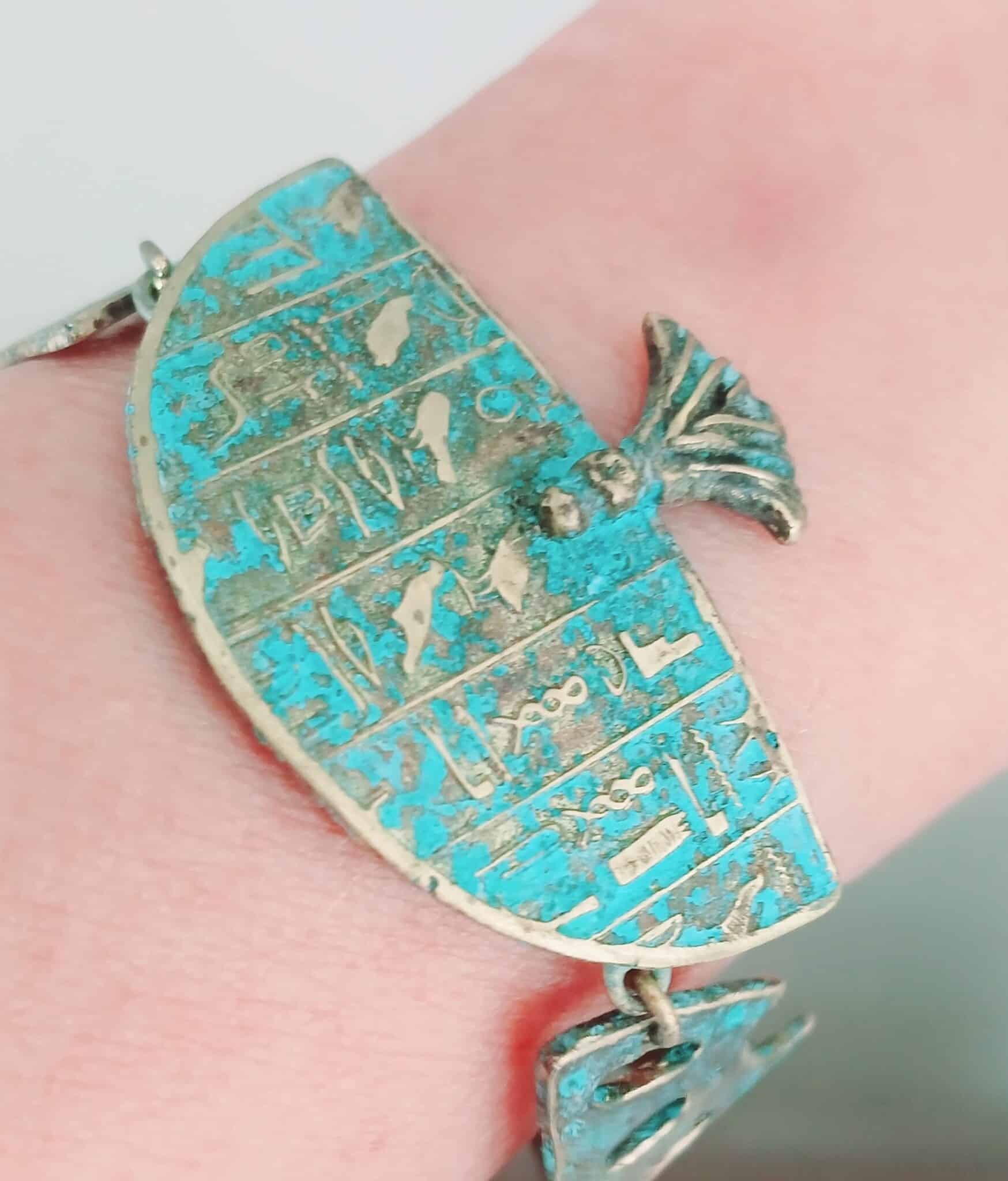 Be the first to review “Bluerust hieroglyphics adjustable cuff”