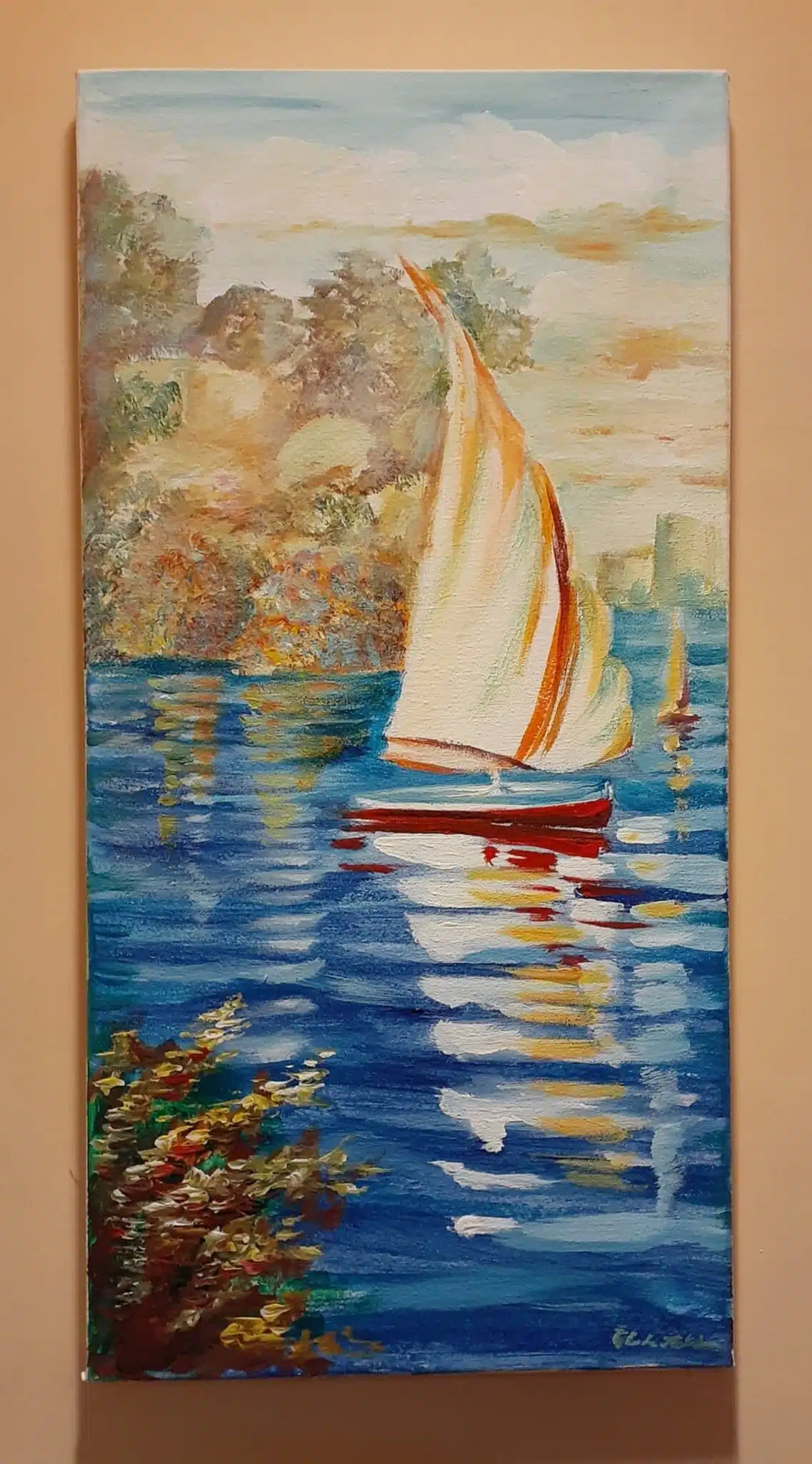 I ordered the 2 boats and the 1 boat paintings. And they are both hanging proudly on the wall in my home. Ghada managed to paint them and send them to me in a short notice before my travel. Thank you 😊