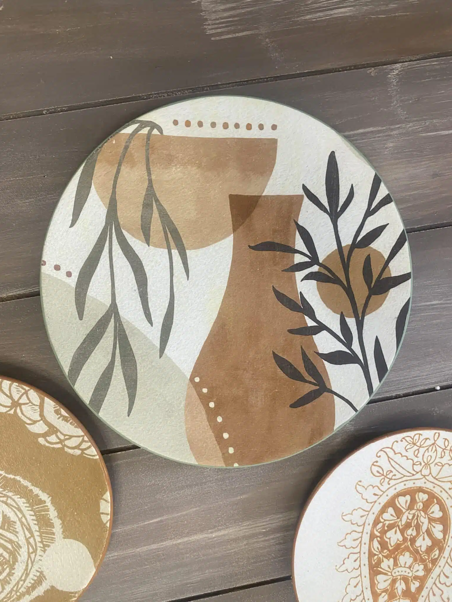 Decoupaged wall plates boho design