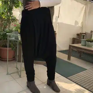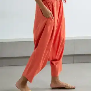 vest with front buttons, pants with elastic adjustable waist and side buttons
