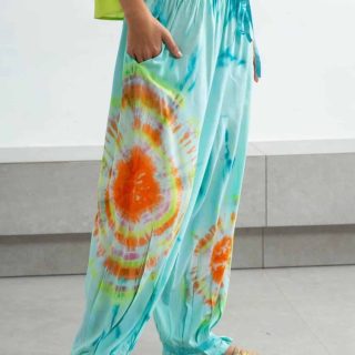 vest with front buttons, pants with elastic adjustable waist and side buttons