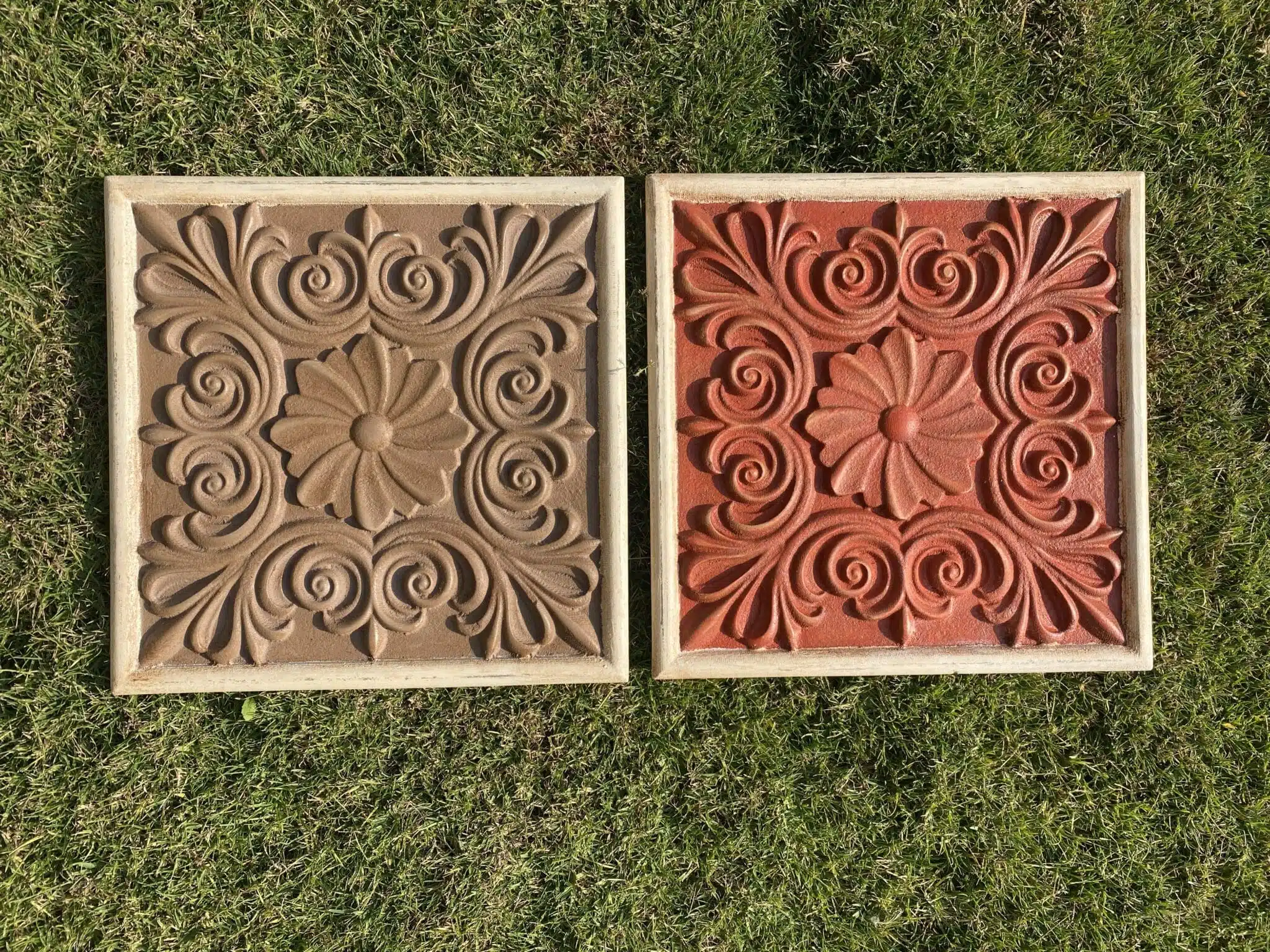 Wooden wall tableaux in boho style mocha and warm orange colors