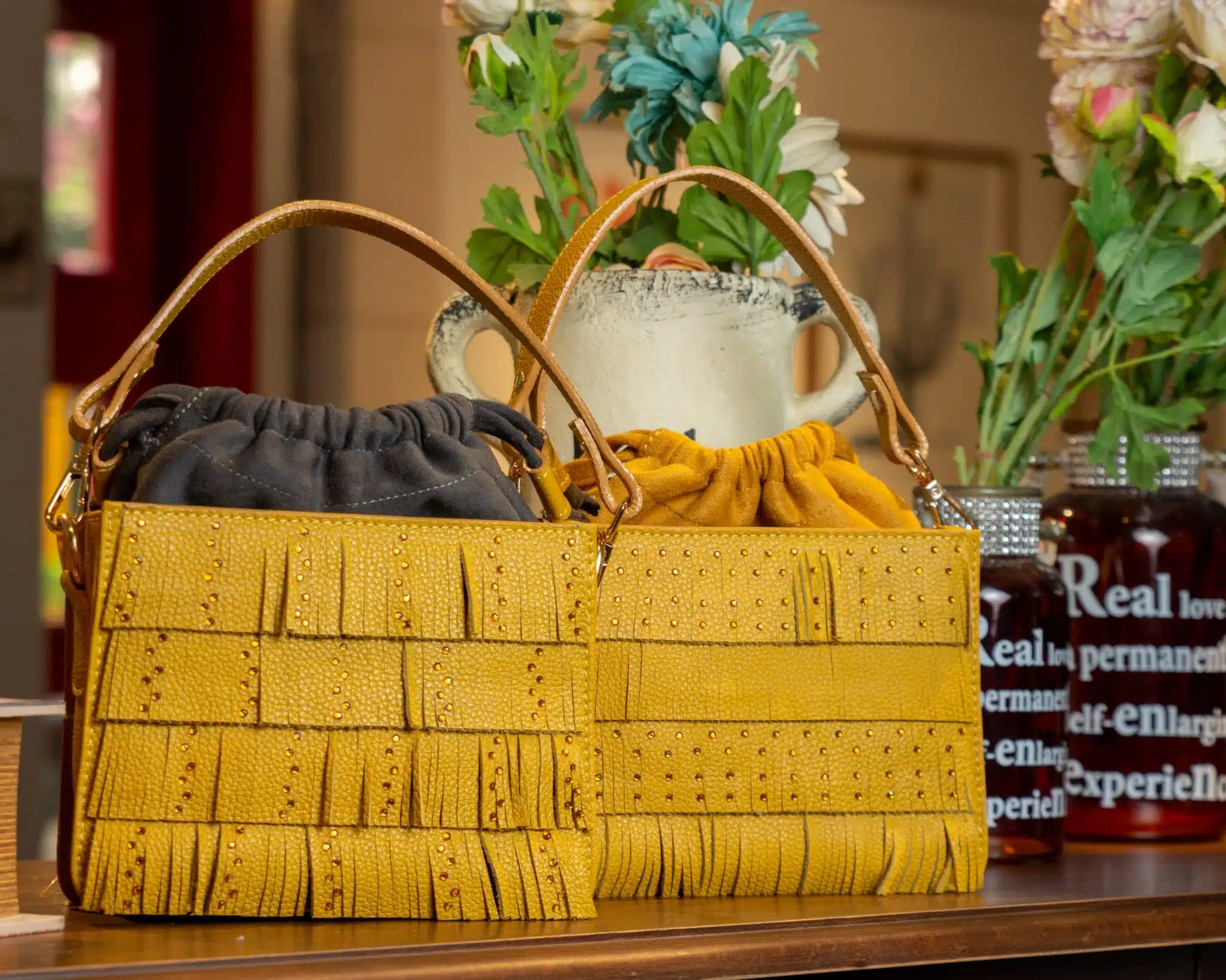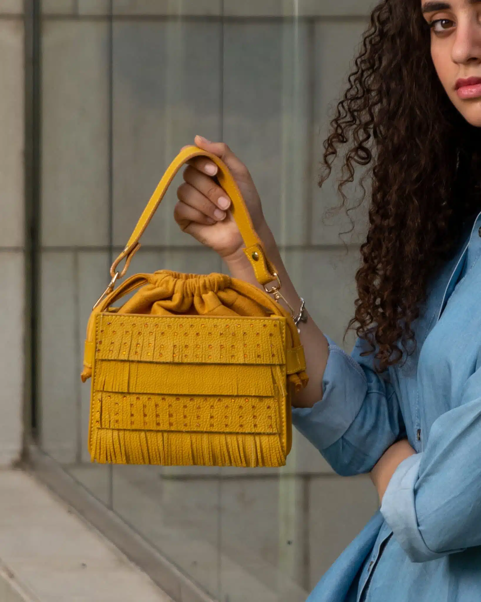 (Bonbon) fringe Bag in Mustard genuine leather with little fringes.