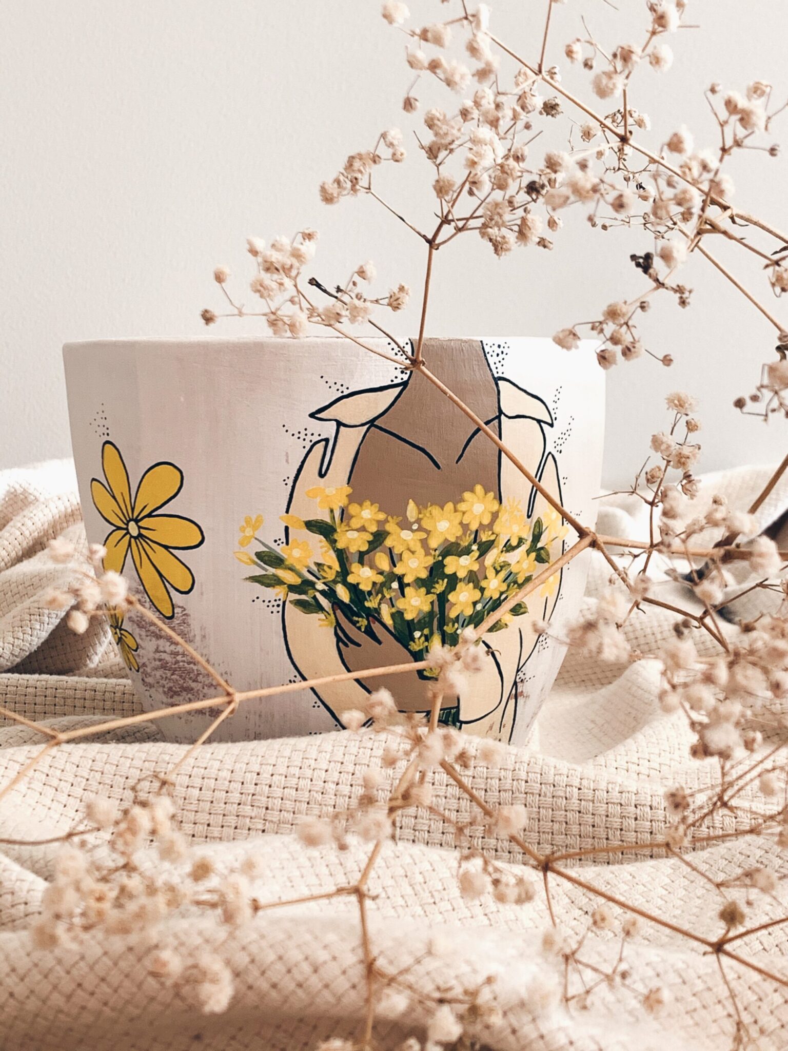 A bestseller from our WOMAN collection. This clay pot is 16 cm in diameter. Hand painted, has drainage holes and comes with a clay saucer. You can plant directly in it or use it as a decorative pot.