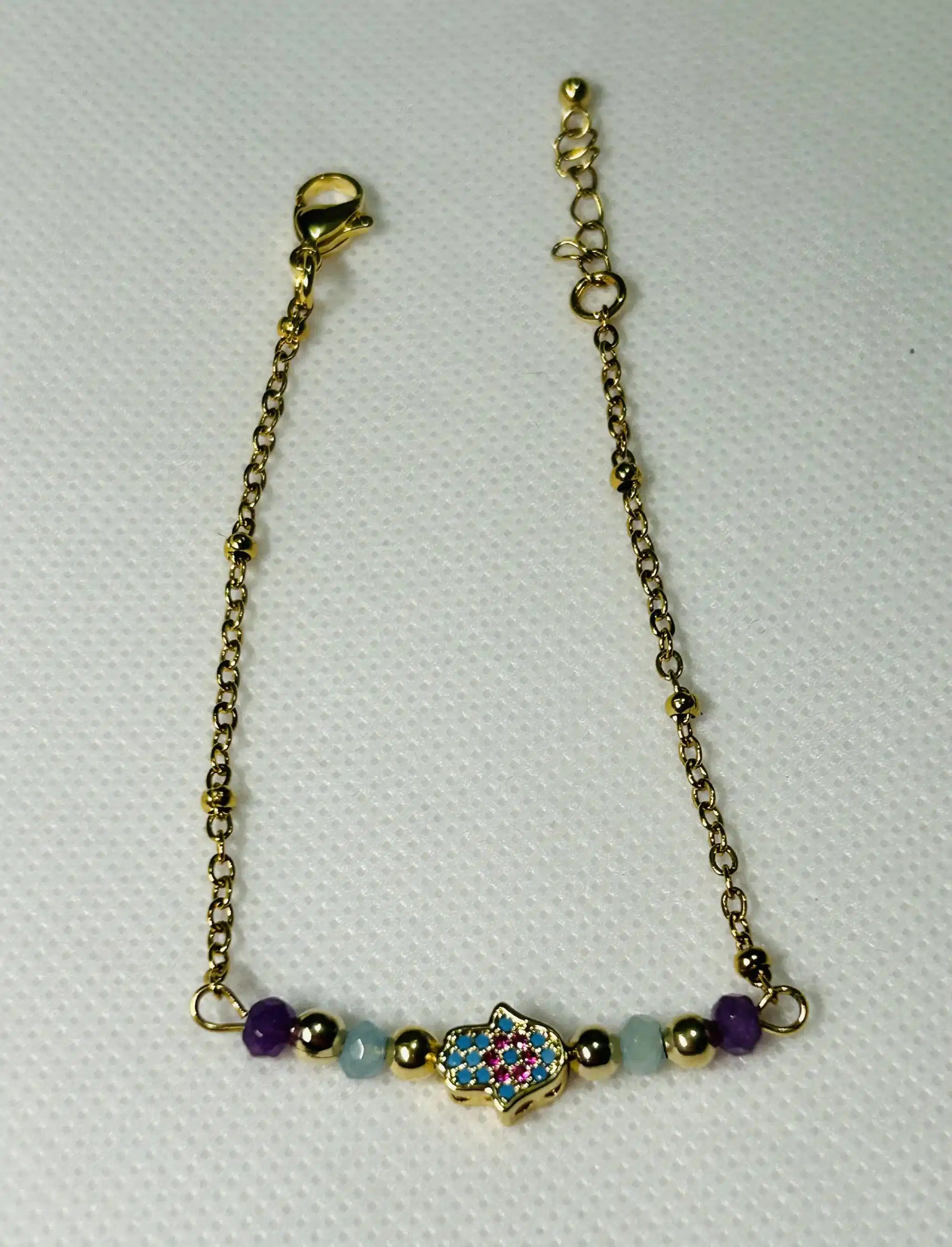 305 stainless steel bracelet with colored pearls and brass fatma hands with zircons