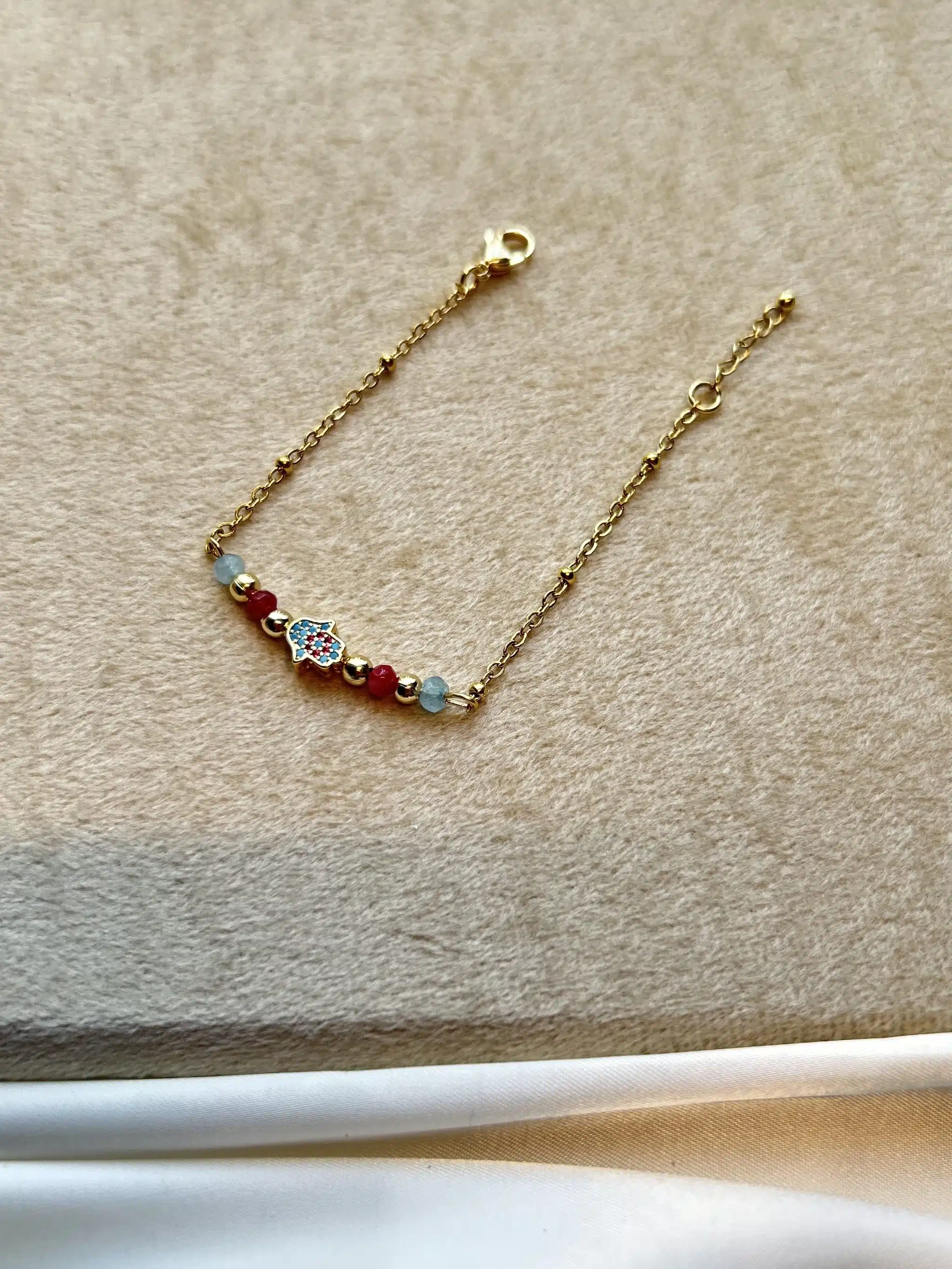305 stainless steel bracelet with colored pearls and brass fatma hands with zircons