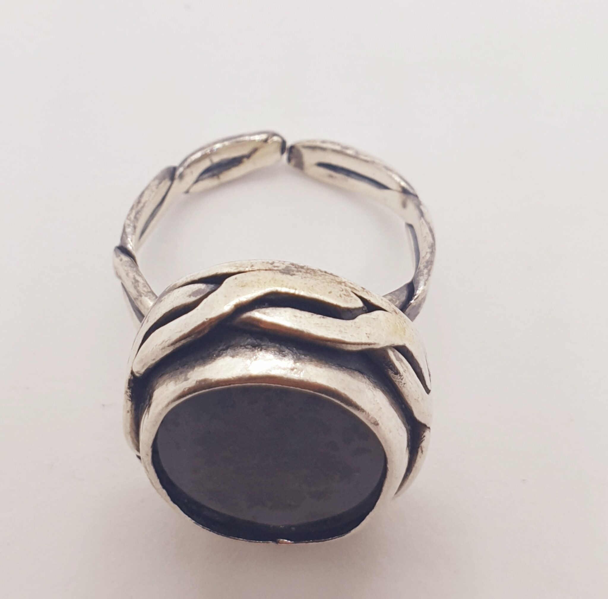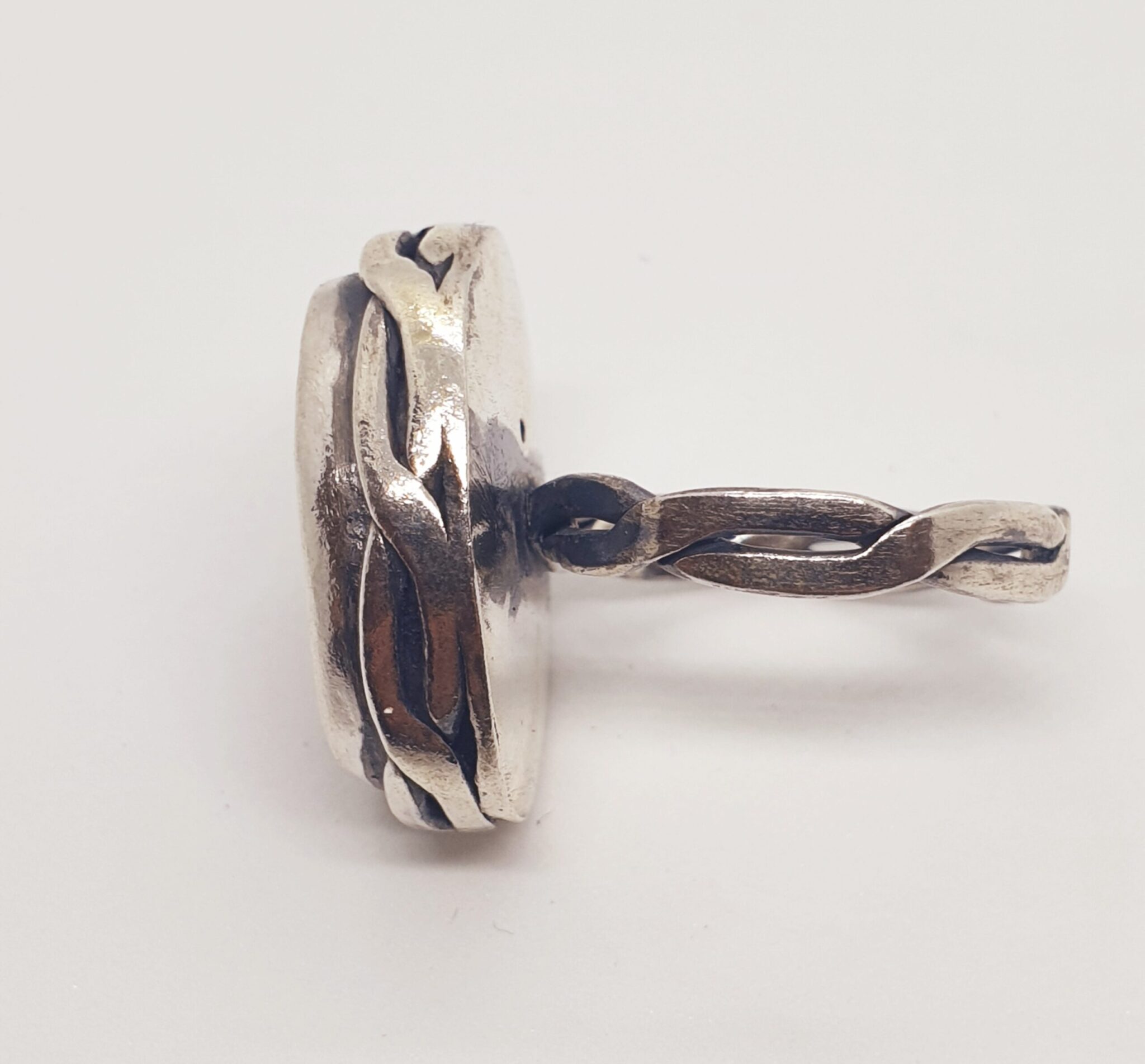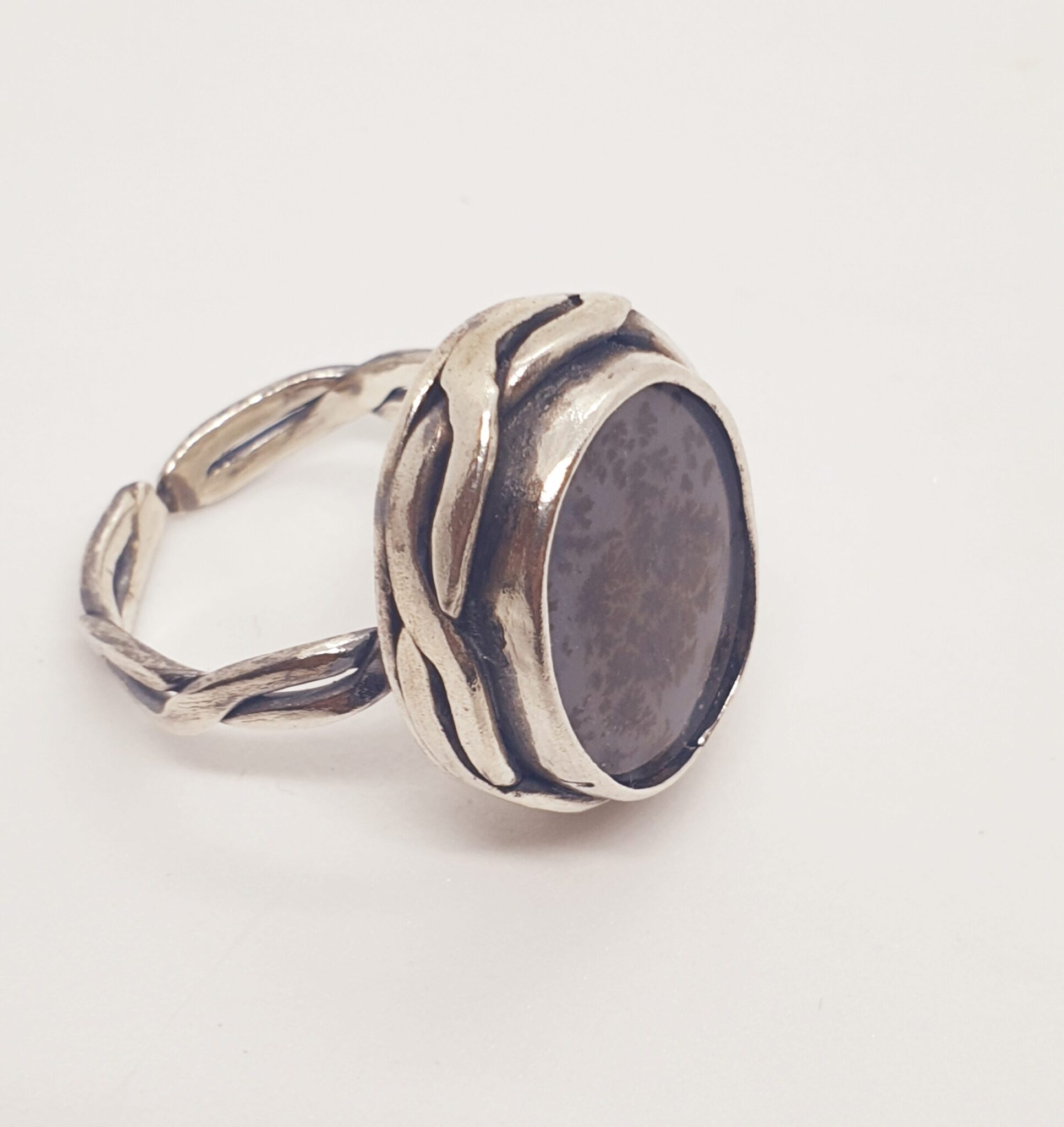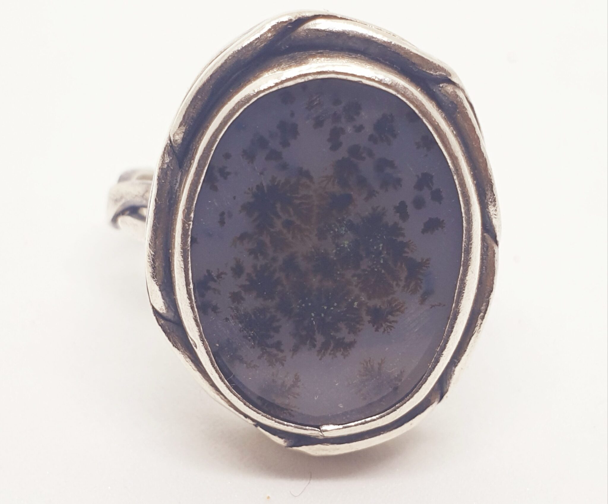 Sterling silver braided ring and wide braided cabochon with tree agate stone.