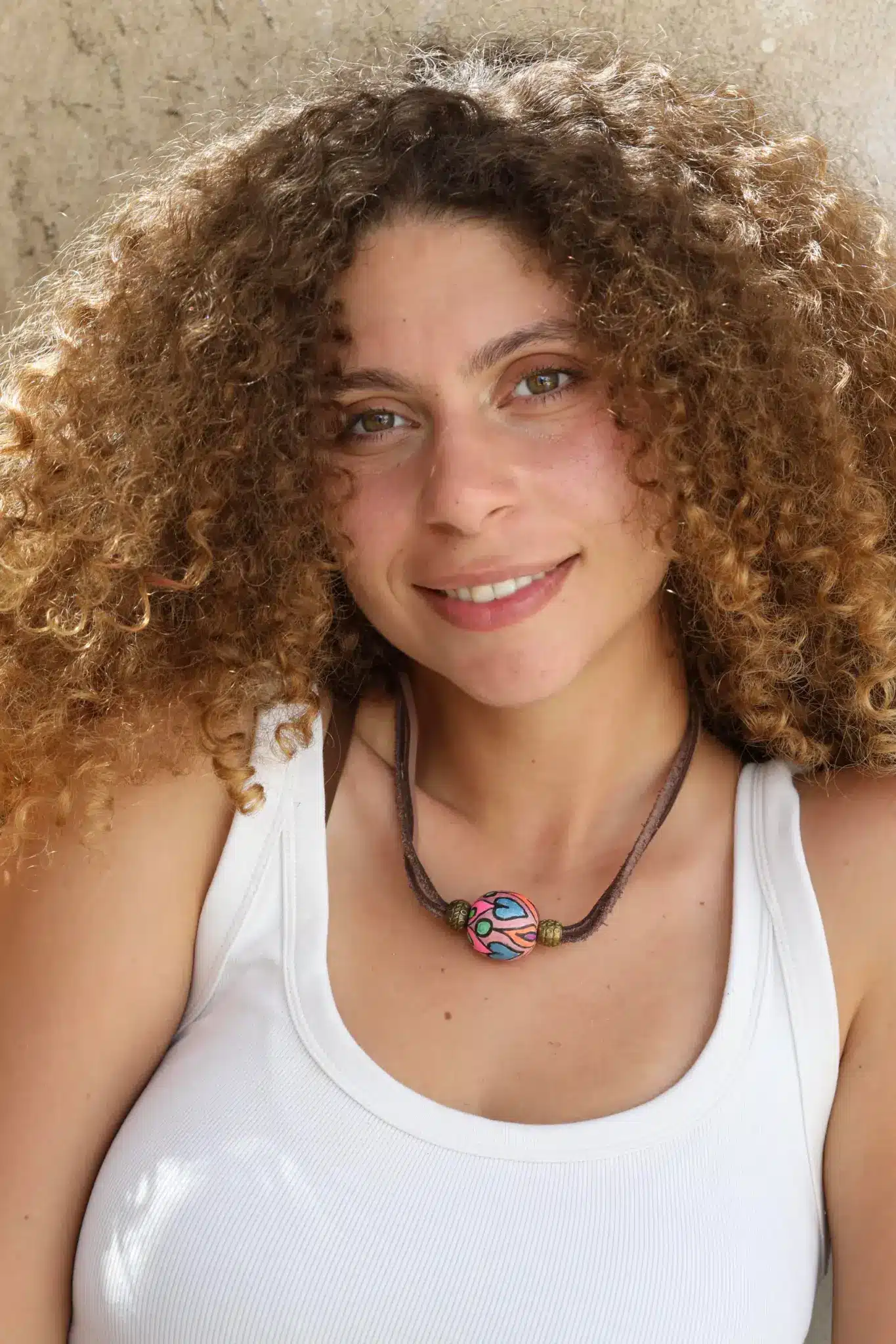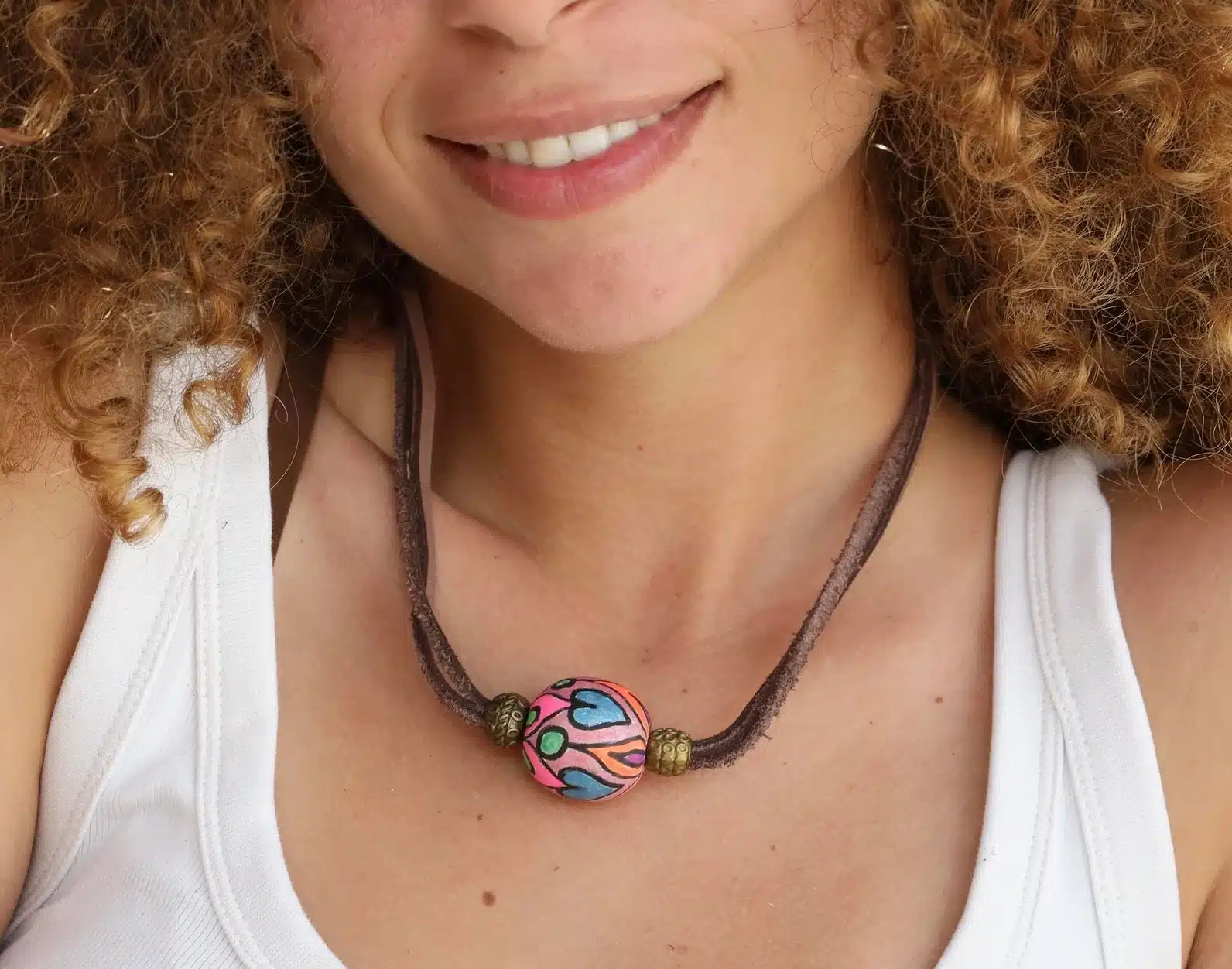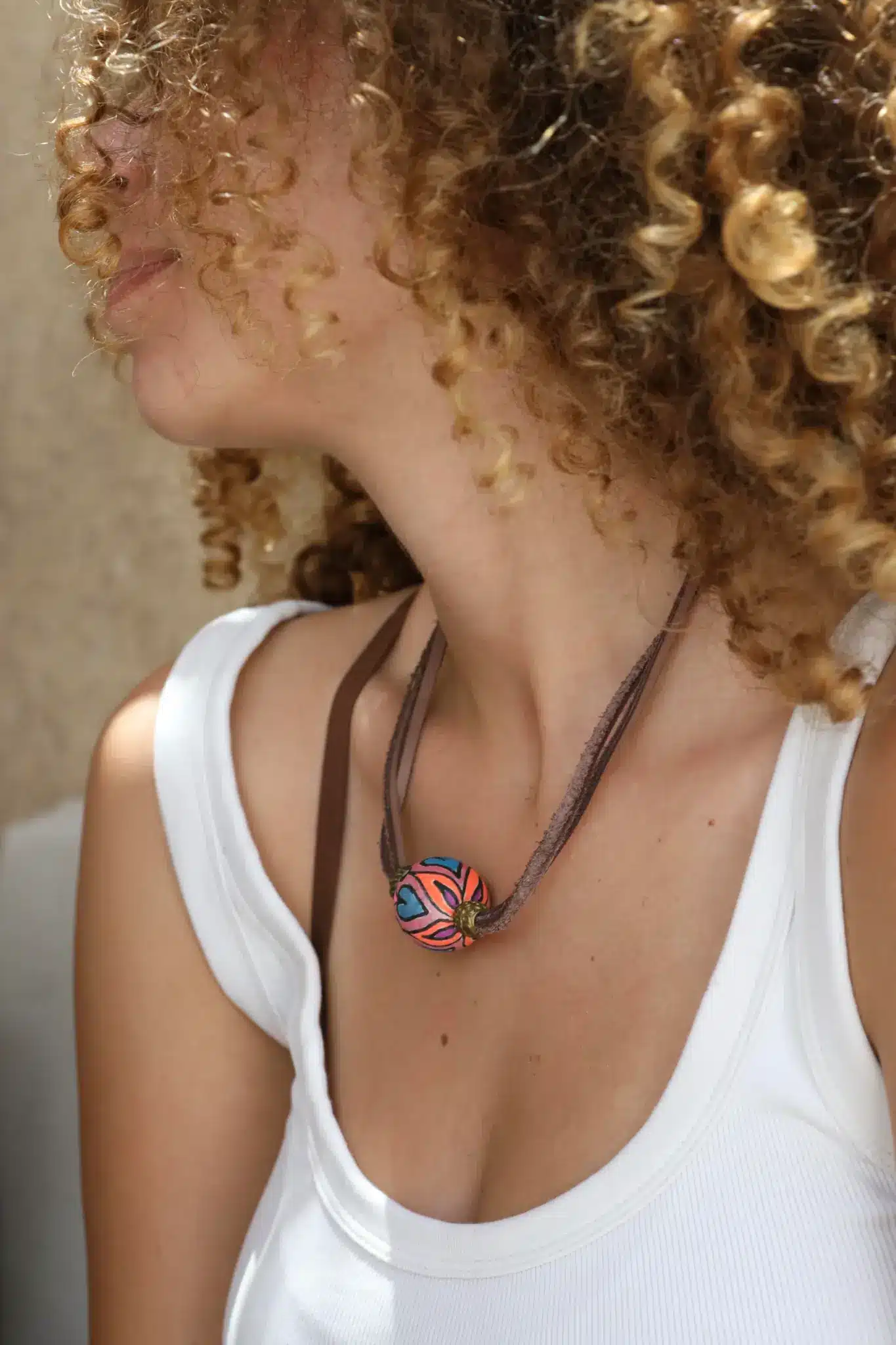 Brown Leather Necklace With A Colored Bead