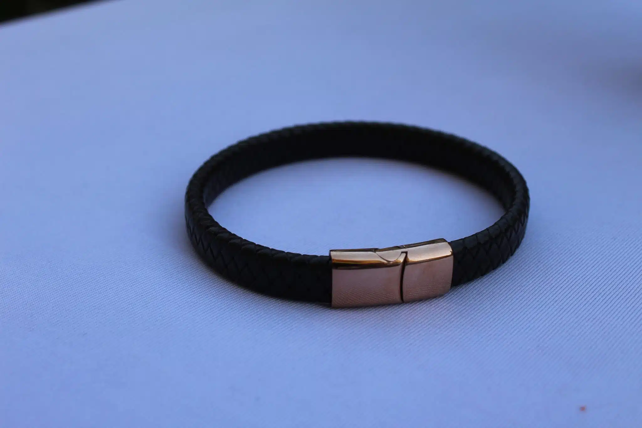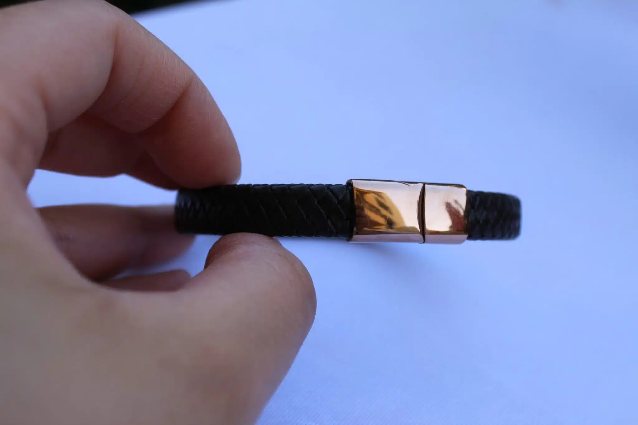 Brown high-quality leather men’s bracelet with golden stainless steel lock