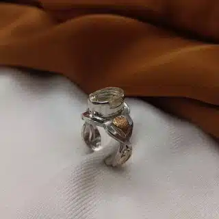 سوار مستلهم من وحدة زخرفة هندسية ونباتية من الفضة الخالصة واحجار التورمالين والفلورايت الطبيعي