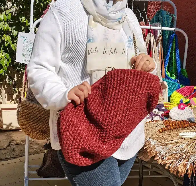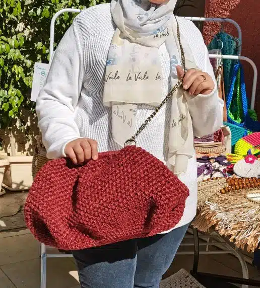 handmade crochet bag large size with jute yarn color dark red