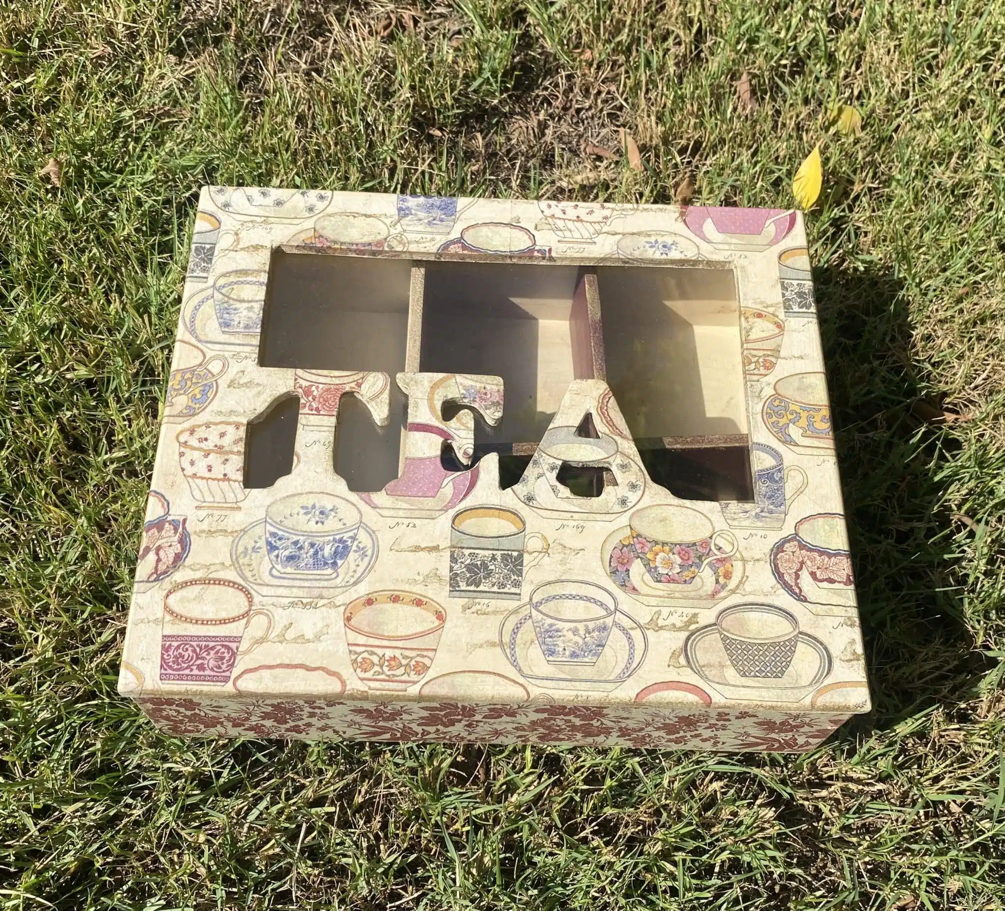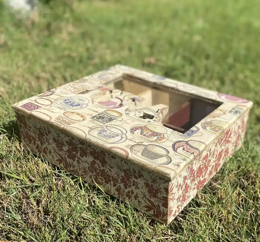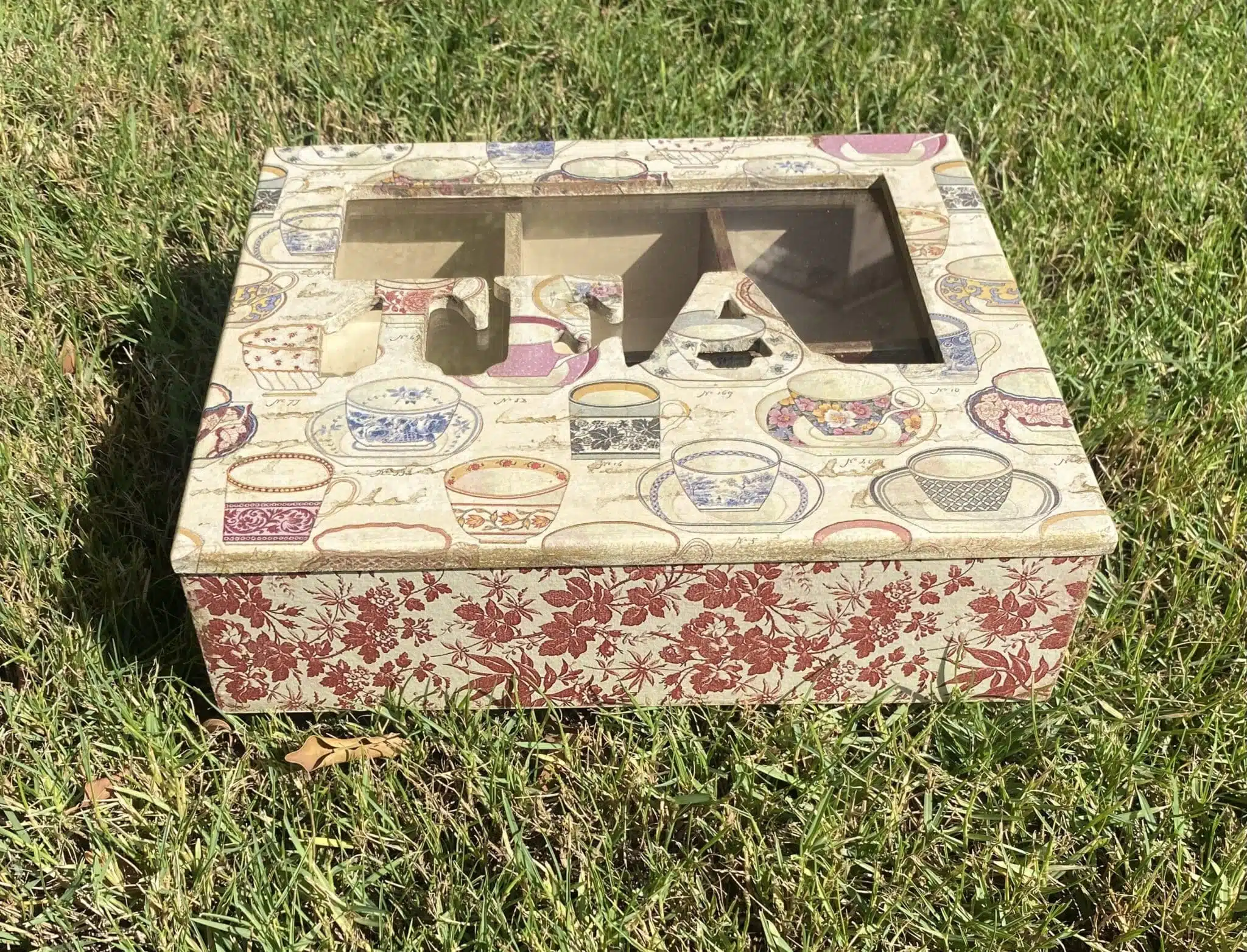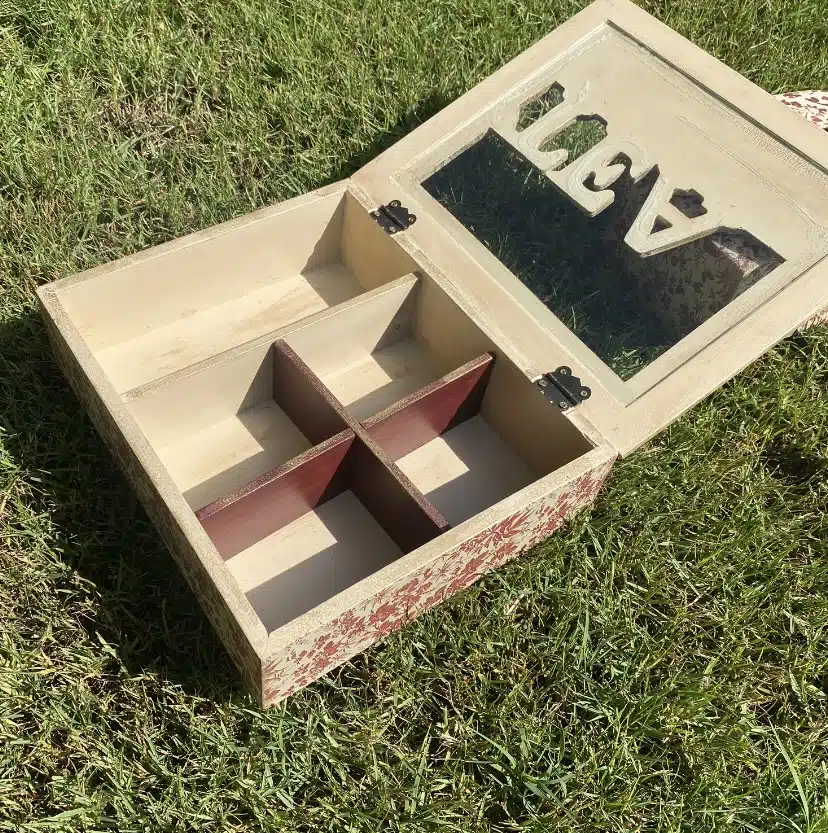 Wooden classic tea box in classic design color burgundy x beige with touch of gold