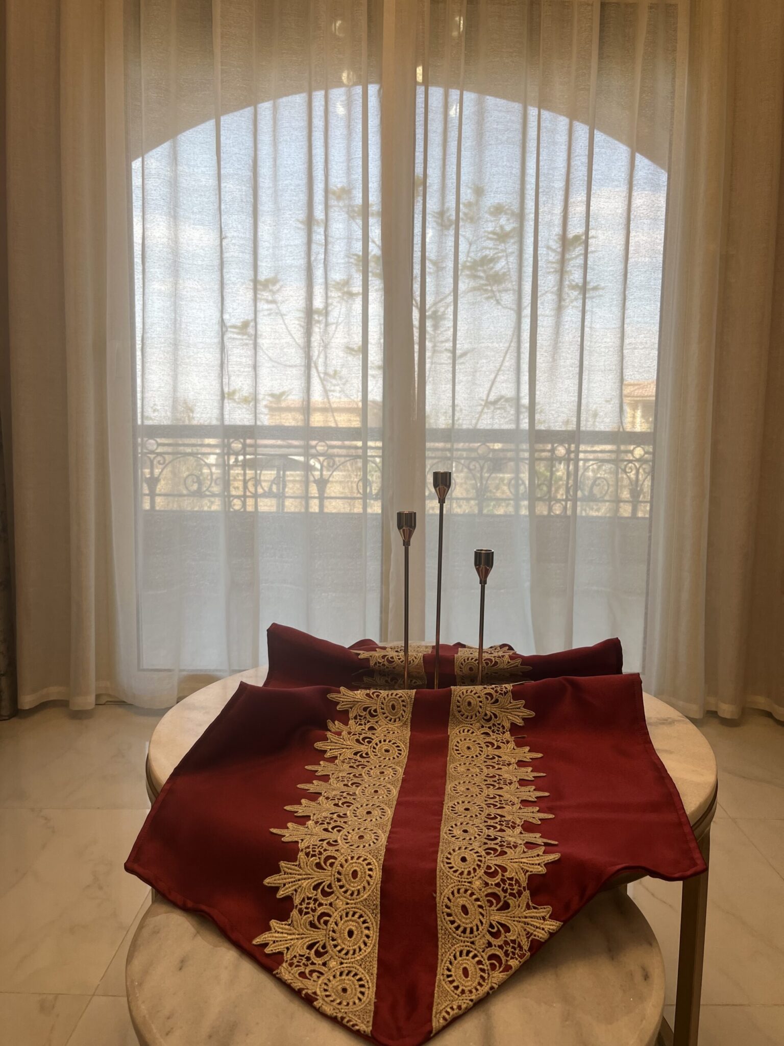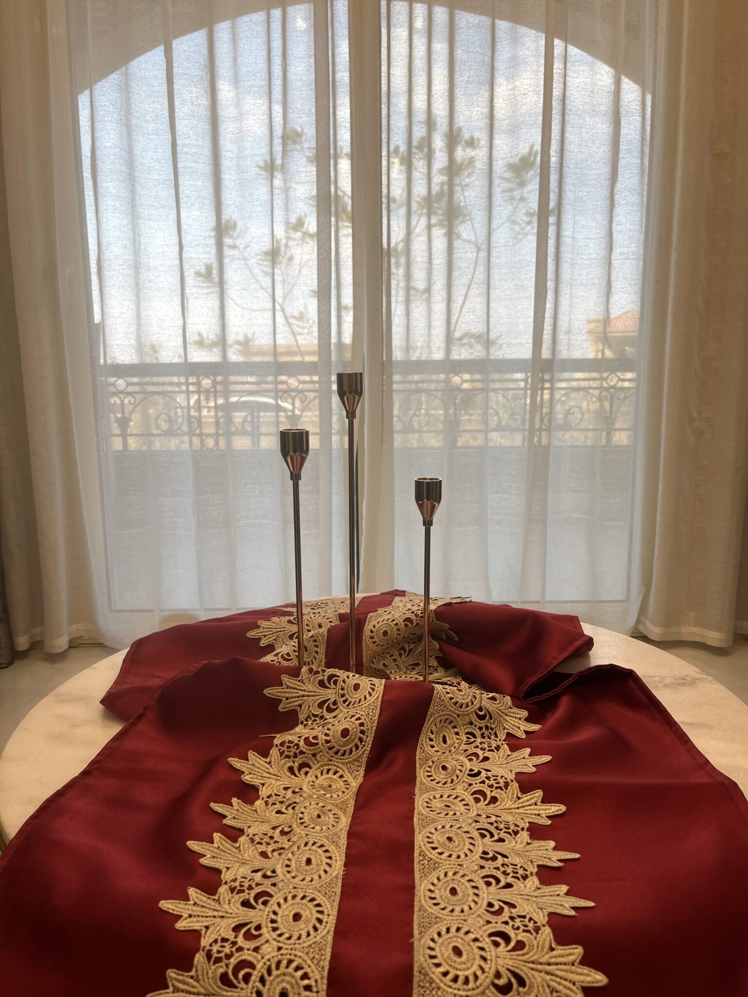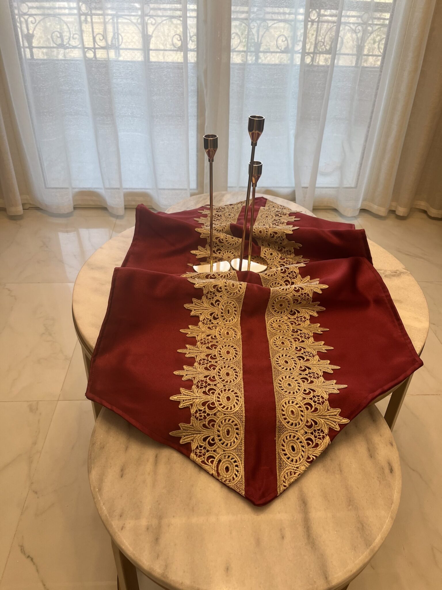 Classic tablecloth made of satin burgundy with lace 130*53