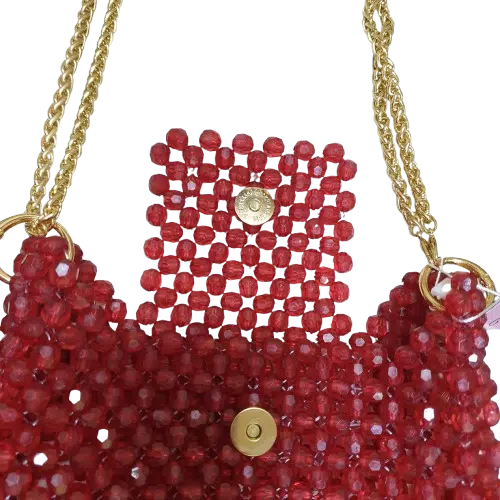 Burgundy acrylic beaded bag , metal handles (golden color)spacious inner space.