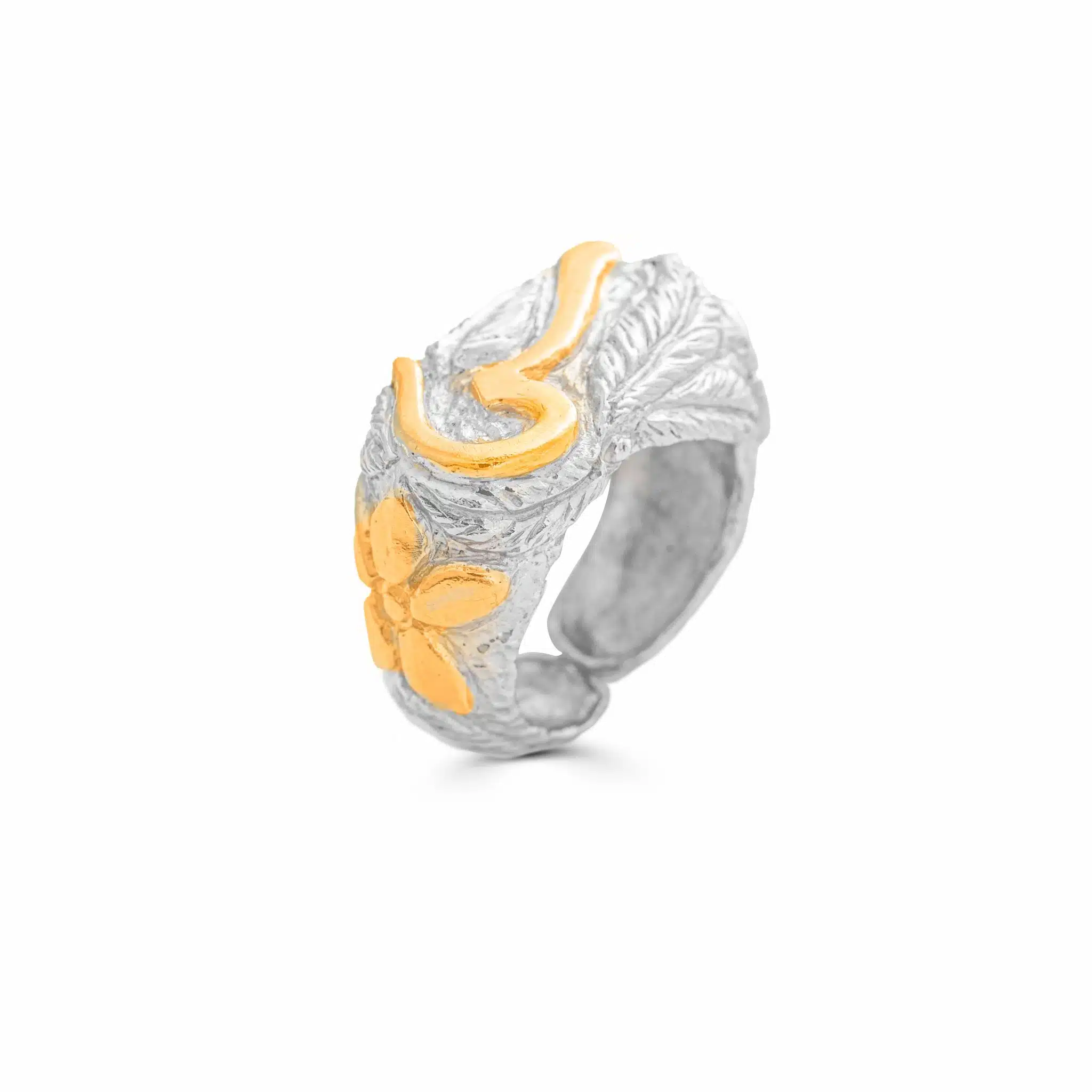خاتم شغل يدوي ، حفر يدوي ، فضة استرليني عيار ٩٢٥ ، مطلي ذهب و بلاتين