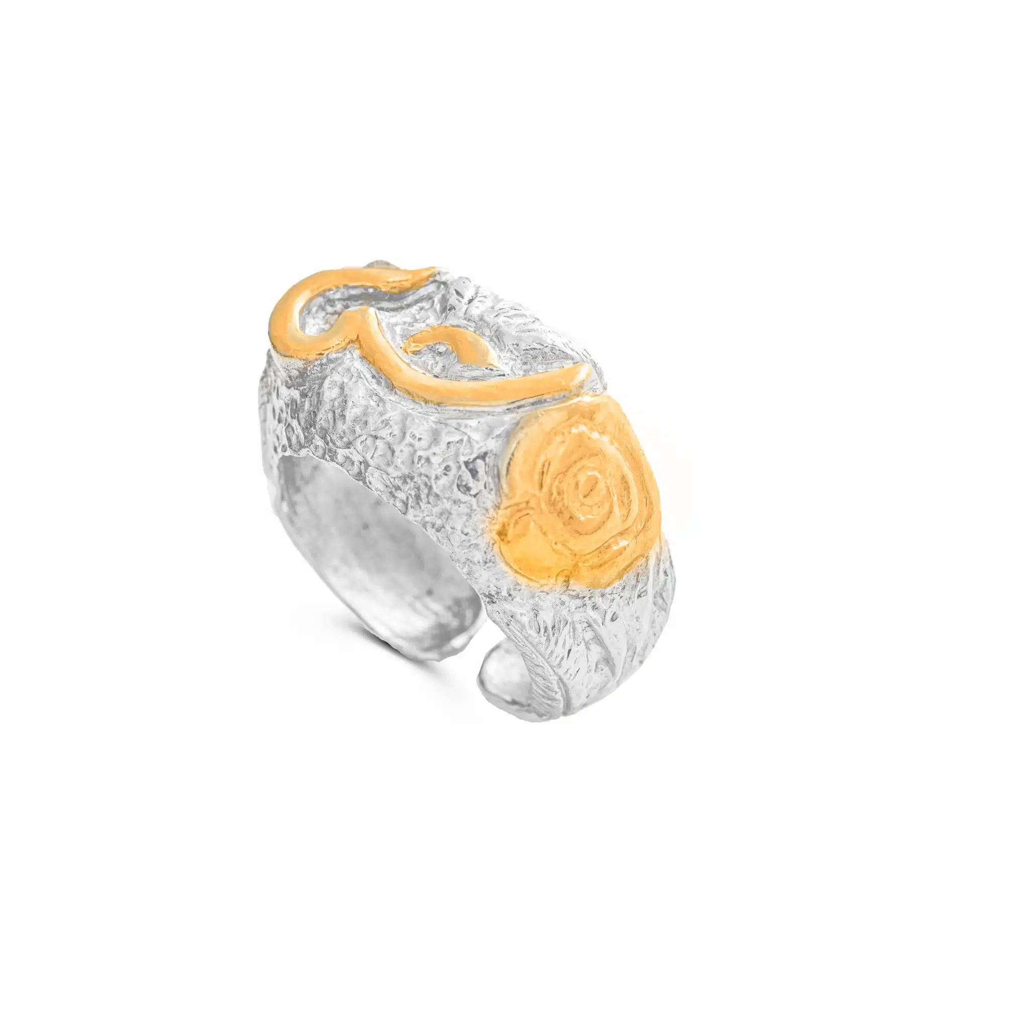خاتم شغل يدوي ، حفر يدوي ، فضة استرليني عيار ٩٢٥ ، مطلي ذهب و بلاتين