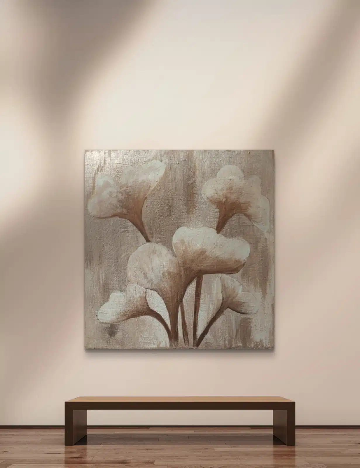 . اللوحة دي بتعكس هدوء وأناقة واضحة، بالألوان الترابية الهادية والستايل المحايد، وبتناسب ديكورات مودرن ومينيمال