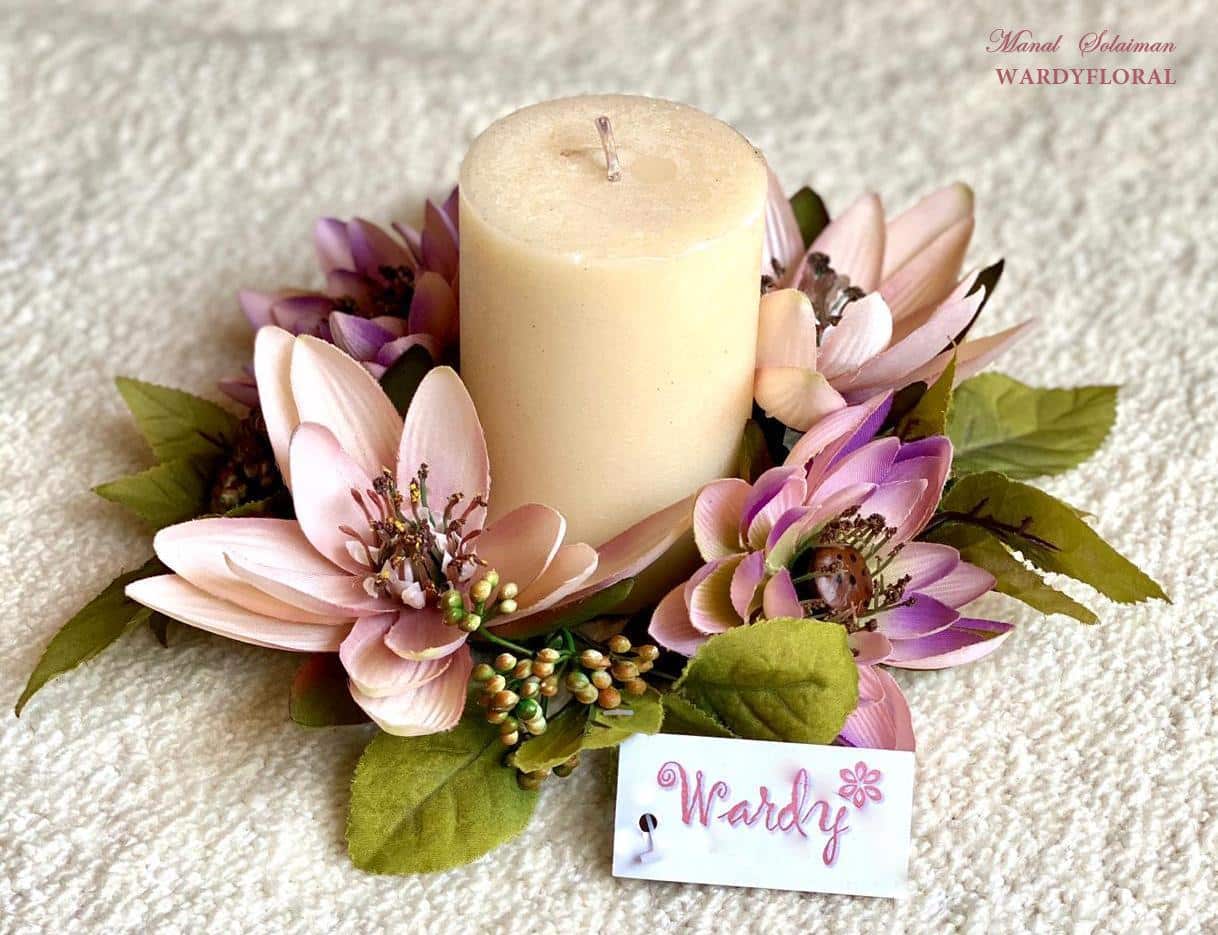 Flowers and candles wreath.Perfect gift.Decor flowers.